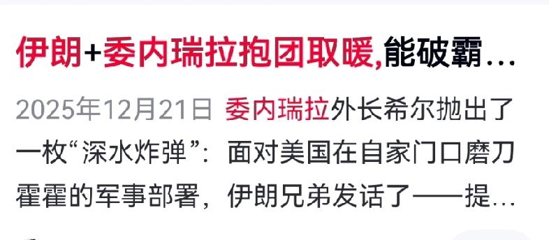 委内瑞拉与伊朗的转向,是一堂昂贵的战略课:在绝对实力差距面前,“抱团取暖”往往靠不住。现实世界残酷的生存法则是——依附弱者易被拖累,唯有自身强大,才能真正掌握规则制定权。 我们曾希望整合受制裁国家的能源,打造人民币“避风港”。然而现实却是:委内瑞拉拿着人民币换美元续命,伊朗在谈判中左右逢源,用中方支持换取西方松绑。在华尔街与美军威慑下,这些伙伴不仅难以提供助力,反而可能成为人民币国际化的负担。 货币的背后永远是实力。美元靠航母舰队护航,谁敢拒收?人民币若想打入石油结算体系,不能只依赖“弱势群体”支持,必须依靠硬实力。待到我们的舰队足以捍卫海上命脉之时,才是人民币真正立足之日。 对于人民币国际化而言,关键在于依靠中国自身的经济韧性、技术进步和综合国力,而非寄希望于脆弱的联盟。 当中国有能力通过自身实力保障全球利益时,人民币的国际化才能从“避风港”走向“规则制定”。 对此你怎么看?