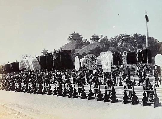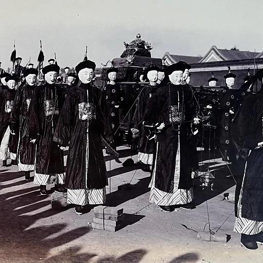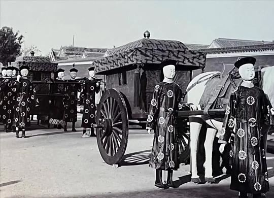 1909年,荷兰人拍摄的慈禧葬礼,规格超皇帝,那场面现在看都让人头皮发麻。 出殡队伍长达数里。纸人纸马做得跟真人真马一样,在大白天的街道上晃晃悠悠,仿佛阴兵过境。 送葬队伍中,各种奇形怪状的仪仗让人目不暇接。据说光是抬棺的杠夫就有上千人,轮流替换。如此大的阵仗,耗费的钱财更是不计其数。在当时百姓还食不果腹时,慈禧却用这般奢华葬礼来彰显所谓的尊贵,真让人觉得讽刺又恐惧。