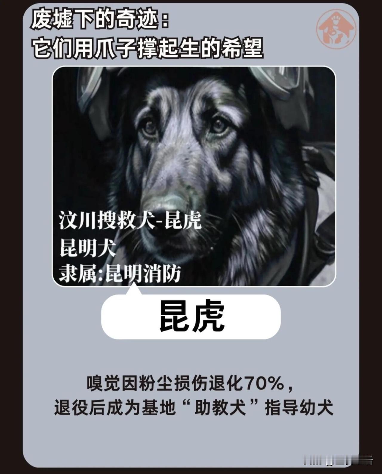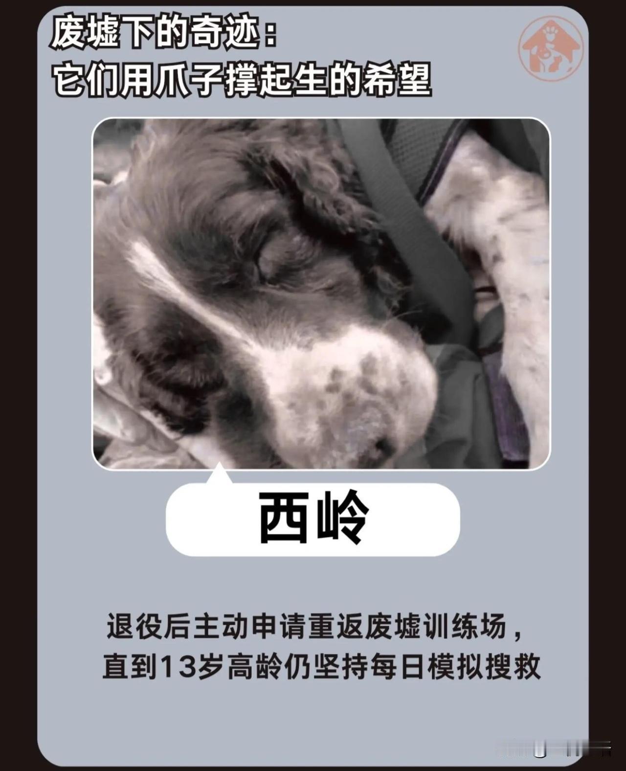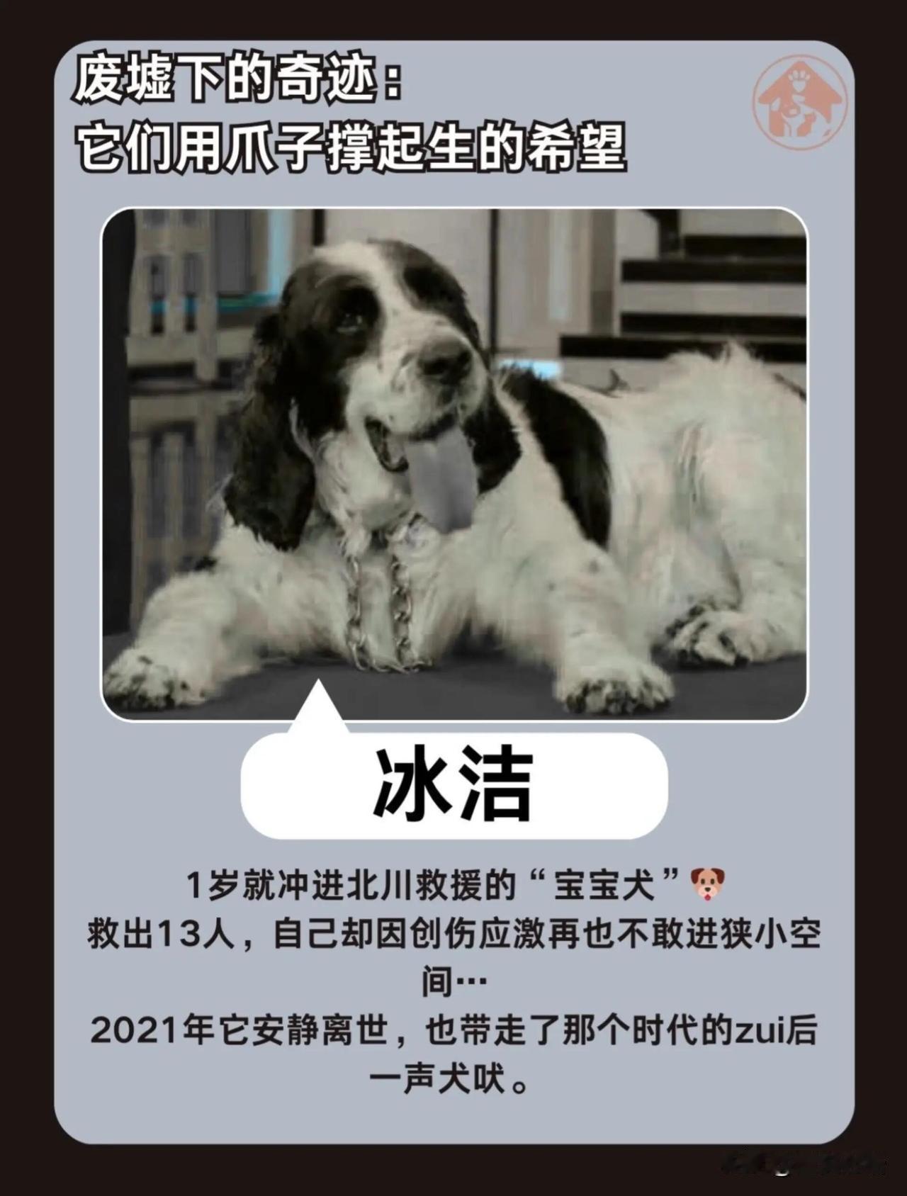 今天才知道 汶川地震的67名英雄 它们永远离开了我们 但它们不该被忘记! 2008年那场灾难里, 67只狗狗是最勇敢的逆行者。 它们没有铠甲,却用爪子刨开废墟。 脚掌被钢筋割破、被玻璃渣嵌入, 流着血还在坚持。 有的累到脱水, 有的吸入粉尘落下病根, 有的甚至预判滑坡救下整支救援队。 70%的幸存者, 都是它们用生命换来的。 如今这67位英雄已全部离世, 最后一只冰洁2021年安静离开。 它们不会说话, 却用行动诠释了什么是忠诚。 狗狗们从来都不是食物,是伙伴, 是危难时能托付性命的家人。 这些无言的牺牲,我们永远铭记! 愿每个生命都能被温柔以待。