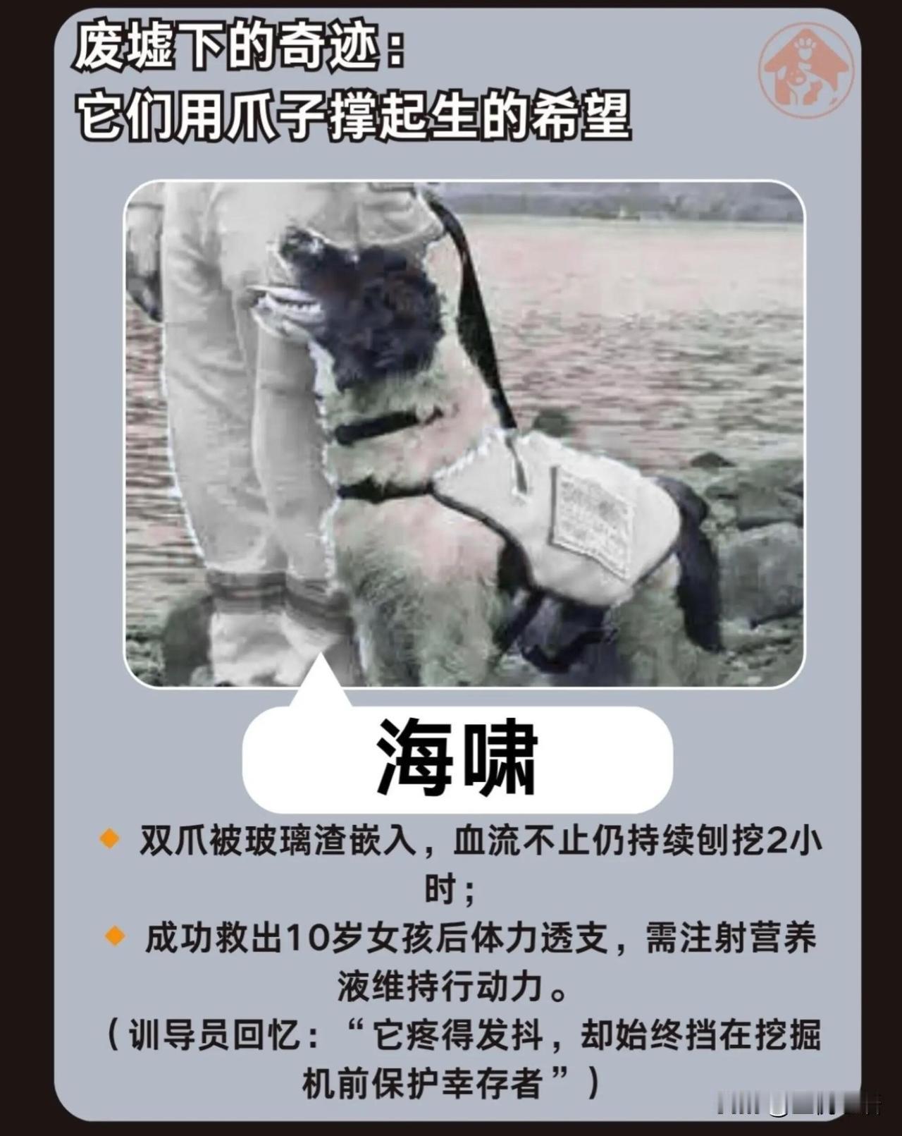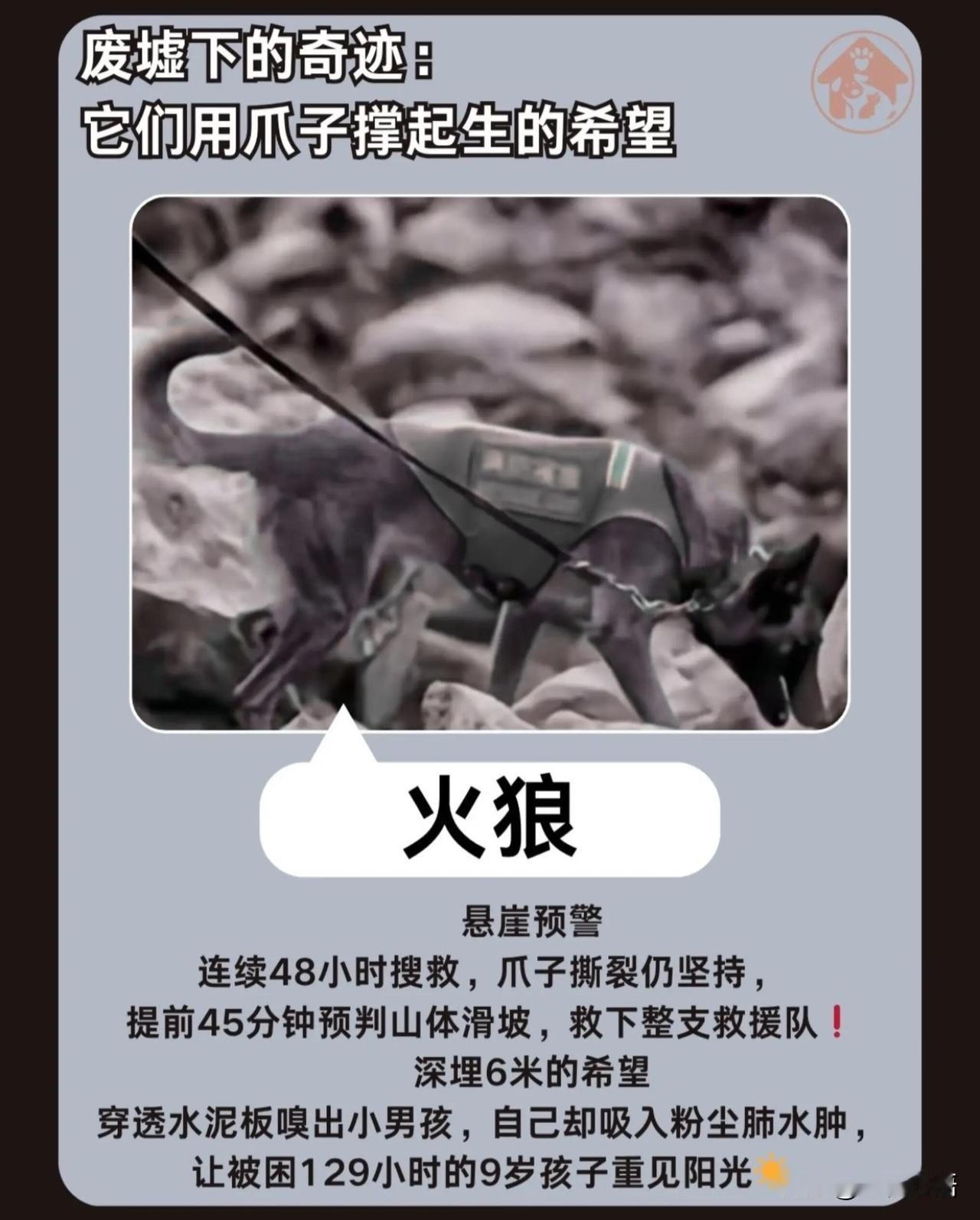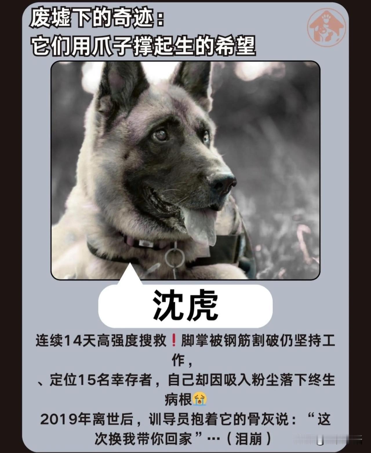 今天才知道 汶川地震的67名英雄 它们永远离开了我们 但它们不该被忘记! 2008年那场灾难里, 67只狗狗是最勇敢的逆行者。 它们没有铠甲,却用爪子刨开废墟。 脚掌被钢筋割破、被玻璃渣嵌入, 流着血还在坚持。 有的累到脱水, 有的吸入粉尘落下病根, 有的甚至预判滑坡救下整支救援队。 70%的幸存者, 都是它们用生命换来的。 如今这67位英雄已全部离世, 最后一只冰洁2021年安静离开。 它们不会说话, 却用行动诠释了什么是忠诚。 狗狗们从来都不是食物,是伙伴, 是危难时能托付性命的家人。 这些无言的牺牲,我们永远铭记! 愿每个生命都能被温柔以待。