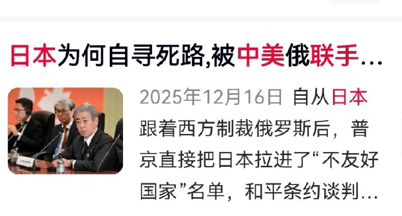 日本的噩梦剧本:中美若联手,东京何去何从? 表面看日本似乎有恃无恐,实则踩在刀刃上。若军国主义复辟、染指核武,将直接触碰美国底线。东京某些政客幻想扯着“遏华”大旗拉美国下水,甚至暗谋核武装,简直是玩火自焚。 美国对日本的戒备远超想象——从“广场协议”锁死经济,到驻军监控东京,战略始终是“以日制华、锁住日本”。一个拥核的日本,对中美都是不可接受的威胁。 倘若日本真迈出那一步,中美核心利益将瞬间重合,联手反制绝非虚言。届时经济绞杀、军事压境同步而来,所谓“复兴”必成泡影。 日本自以为棋手,殊不知在中美大局中,终究是枚棋子。 对此你怎么看?