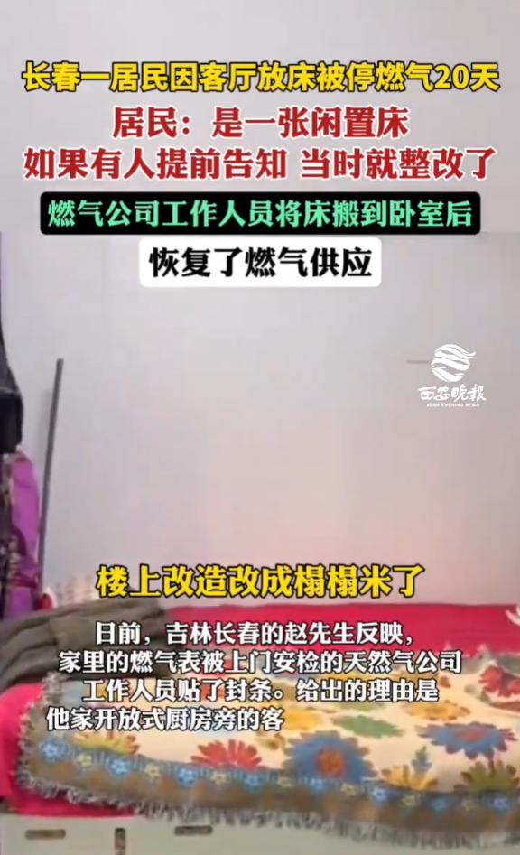 “冤不冤!”近日,吉林长春,一男子家燃气被停了20天,日常做饭都成了难题,等他去问燃气公司时,才知道是因为自家客厅放了张床,不符合规定,就直接停了,这让男子顿感无语,表示如果公司事先说明,自己完全可以配合。网友:就想为难人! 近日,长春的气温低至零下十几度,这名男子像往常一样准备做饭时,却发现燃气灶无论怎么点火都没反应,查看燃气表后才发现,表具已经被贴上了封条,燃气供应早已中断。起初他以为是欠费导致的,赶紧查询缴费记录,发现费用充足,这让他一头雾水。 接下来的日子里,燃气停供让他的生活陷入了困境。没法用燃气灶做饭,他只能每天点外卖、吃速食,寒冬里连口热汤都喝不上; 原本习惯用燃气热水器洗漱,现在也只能用凉水简单冲洗,冻得瑟瑟发抖。这样的日子持续了20天,实在熬不下去的他,专门抽时间跑到燃气公司询问停气原因。 听完燃气公司工作人员的解释,男子当场愣住了。工作人员告知他,此前上门安检时,发现他家开放式厨房旁边的客厅里摆放着一张床,这种情况不符合安全用气规定,所以当场对燃气表进行了查封,暂停了燃气供应。 工作人员还补充说明,根据相关规范,设置灶具的厨房应设门与起居室等隔开,若起居空间与厨房连通且存在居住设施,会增加燃气泄漏后的安全风险。 得知真相的男子顿感无语,他表示这张床只是闲置不用的旧床,平时根本没人睡,只是暂时放在客厅,没想到竟然成了停气的理由。 更让他不满的是,安检人员当时只贴了封条就离开了,既没有当面告知他停气的具体原因,也没有给出任何整改提示和期限。要是当时工作人员说清楚问题所在,他立马就能把床挪走,根本不会耽误这么久的燃气使用。 男子坦言,自己完全理解燃气公司保障用气安全的初衷,也愿意配合遵守相关规定,但这种不提前告知就直接停气的做法,实在太不合理。 寒冬腊月里,燃气停供直接影响基本生活,尤其是持续20天的停气,让他承受了太多不便。他多次和燃气公司沟通,希望对方能先恢复供气,自己会立即整改,却始终没有得到明确答复。 无奈之下,男子只好将自己的遭遇分享到网上,希望能得到外界的关注。随着事件在网上发酵,越来越多的网友关注到这件事,燃气公司也很快注意到了相关情况,主动联系了男子,表示会派人再次上门勘察现场。 此时的男子已经提前将客厅里的闲置床搬到了卧室,还特意清理了厨房与客厅之间的通道,确保符合安全用气要求。 勘察当天,工作人员确认男子已经完成整改,客厅里的床具已移除,厨房与起居空间的安全距离符合规范,当场就拆除了燃气表上的封条,恢复了燃气供应。 困扰男子20天的燃气难题,终于得到了解决。男子表示,恢复供气后终于能吃上热乎饭了,他已经把这张引发风波的闲置床挂到了网上售卖,避免再出现类似的问题。 这起事件引发了全网的热烈讨论。有网友留言说:“安全第一可以理解,但提前告知整改是基本吧?直接停气20天也太霸道了,明显是为难人”; 也有网友表示:“第一次知道客厅放床会影响燃气使用,涨知识了,不过燃气公司的处理方式确实欠妥”;还有网友感慨:“民生无小事,这种涉及基本生活的问题,处理起来应该更人性化一点,不能一停了之”。 其实,这起事件也暴露了不少人对家用燃气安全规范的不了解。根据相关住宅项目规范,厨房使用面积不应小于3.5平方米,且不应与卧室、起居室等直接连通; 设置灶具的厨房应设门隔开,避免燃气泄漏后扩散到居住空间。此外,厨房还需要保证良好的自然通风,通风开口面积不应小于地面面积的10%,这些都是保障用气安全的基本要求。 燃气公司相关负责人表示,上门安检的目的是排查安全隐患,保障居民用气安全。对于发现的违规情况,会根据实际情况采取相应措施,后续也会优化工作流程,在发现问题时及时与用户沟通,明确整改要求和期限,避免再出现类似的纠纷。 对此,你们有什么看法,欢迎评论留言~