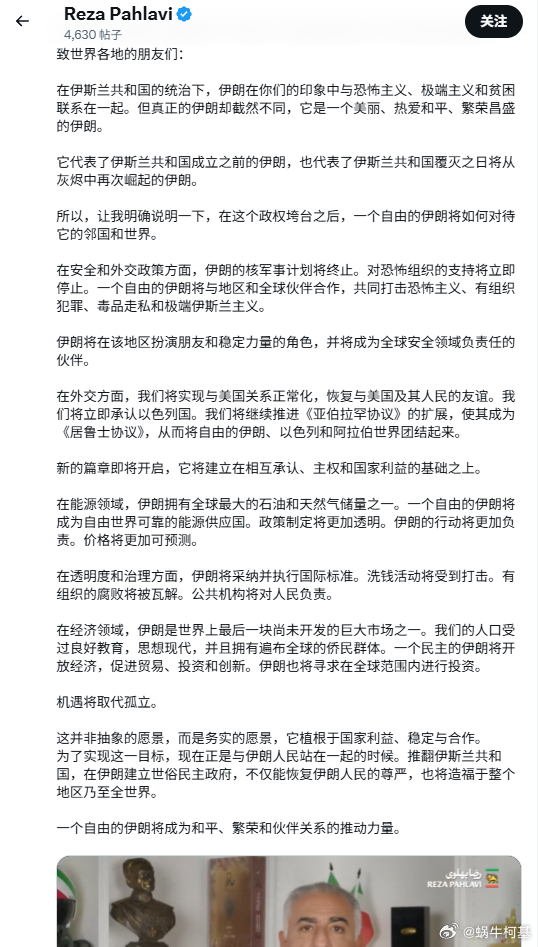 人家巴列维自己写的,微博现在的审核我挺无语伊朗宣布暂时关闭领空伊以冲突最新进展汇总以色列空袭伊朗