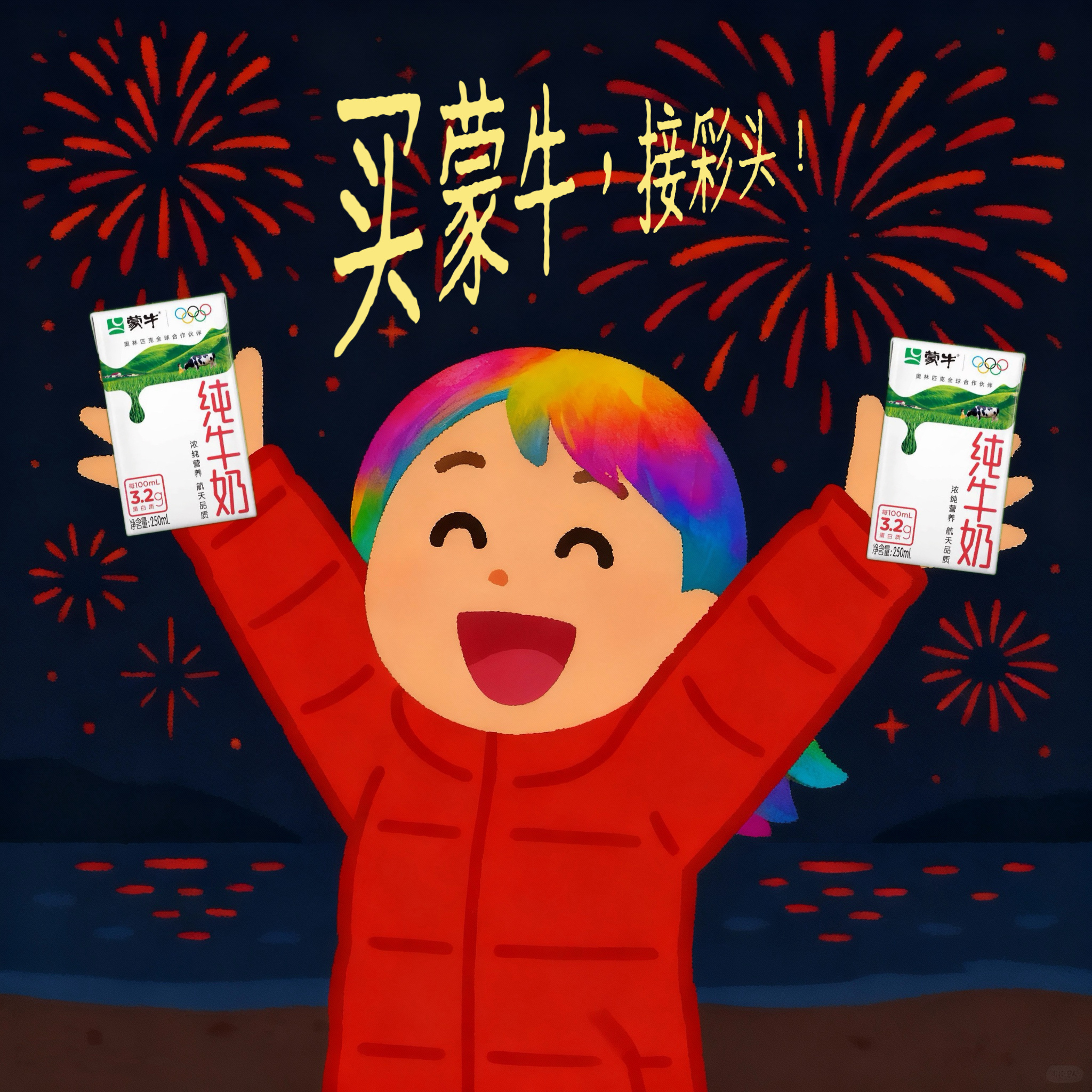 马年的彩头挺有说法 过年讨彩头,从一杯蒙牛牛奶开始!🥛早起喝:今天运气开挂;聚餐喝:友情财运双丰收;睡前喝:连梦里都是好兆头~这哪是喝牛奶啊,明明是把新年好运buff焊身上了!💪 一盒蒙牛牛奶,喝的是营养,接的是彩头,过的是热气腾腾的日子!