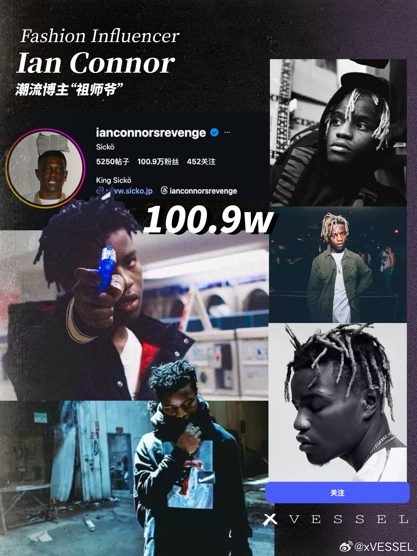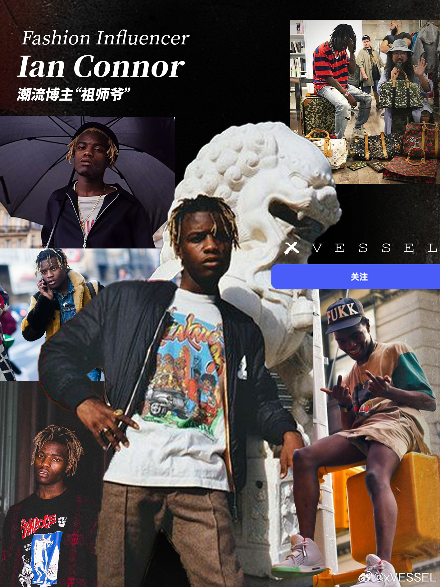 Ian Connor,潮流「孩子王」,潮流博主“祖师爷”,INS坐拥100万+粉丝他是Kanye门徒,御用造型师,曾作为Yeezyseason模特亮相与Virgil Abloh、A$AP Rocky是挚友,曾经是A$AP Mob的创意核心成员,Virgil 御用模特他也是卡戴珊家族与Wiz Khalifa的造型指导从网络潮流穿搭博主第一人,一众顶流Rapper幕后推手到街头流行ICON从创立Revenge x Storm带来爆款闪电鞋到如今sicko的一鞋难求这位潮流“点金胜手”已预言接下来的潮流暴风眼sicko by xVESSEL「冒险家」系列,更多惊喜,coming soonxvesselxvessel在哪