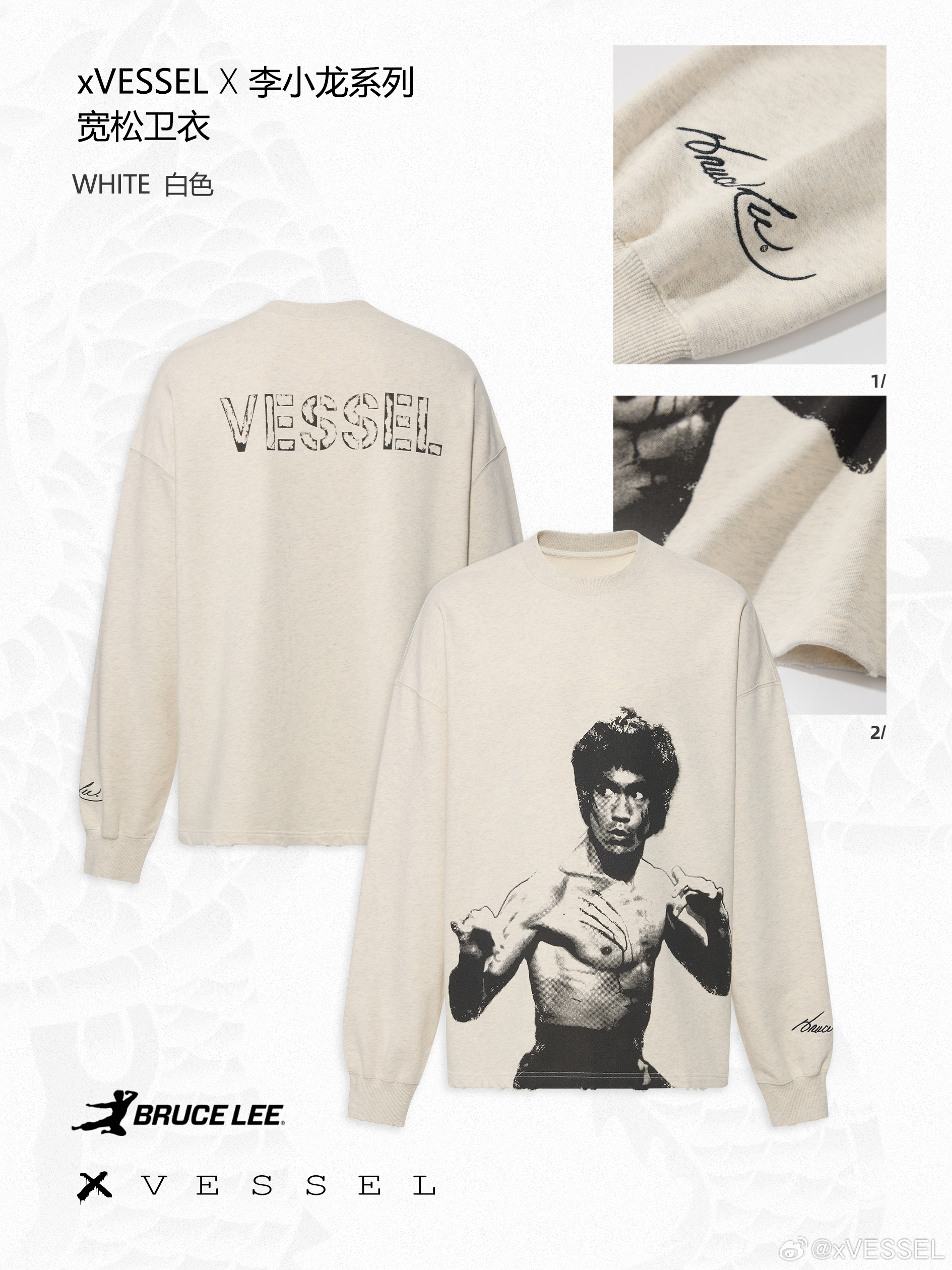 现身成都演唱会上身新款【xVESSEL x 李小龙联名系列宽松白色卫衣】复古质感沉淀时光,日常穿着自成一格。正面精细定格李小龙标志性形象,采用牢固印染工艺 让每一次穿着都是对经典的清晰复刻。神仙友情 次次同框都让人感受到满满的情谊💜xvesselxvessel在哪