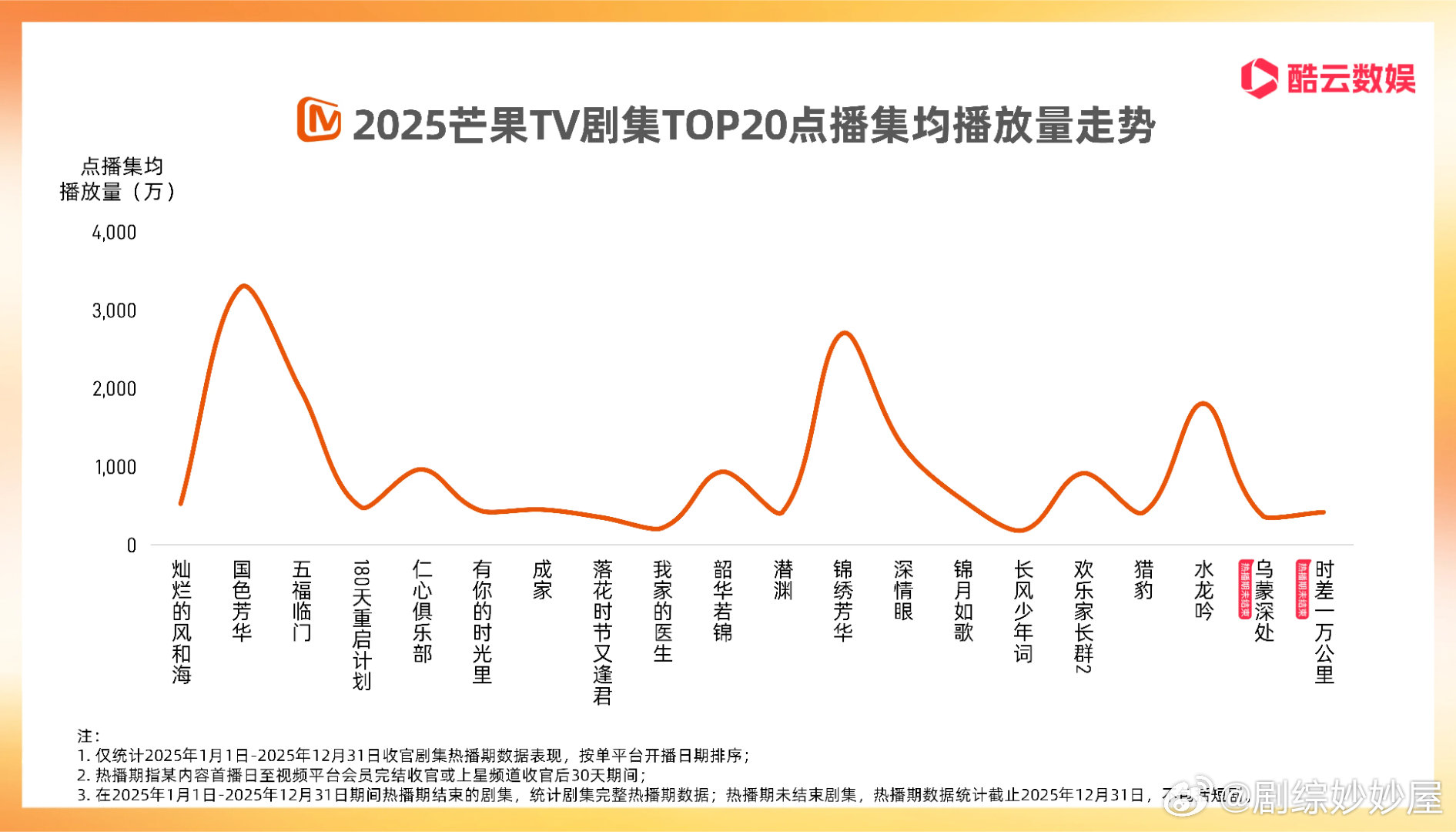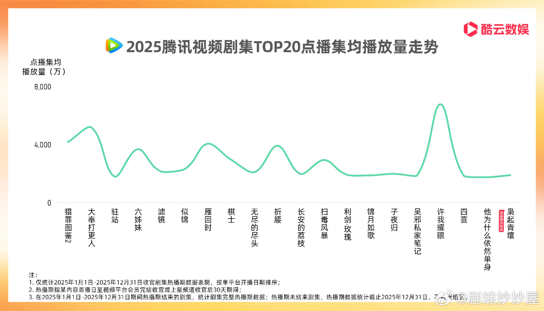 爱优腾芒四大平台2025集均播放量走势三高峰🥝:漂白,生万物,唐诡👖:难哄,藏海传,以法之名🐧:大奉打更人,雁回时,许我耀眼🥭:国色芳华,锦绣芳华,水龙吟数据上也很符合播出期间的体感嘛!