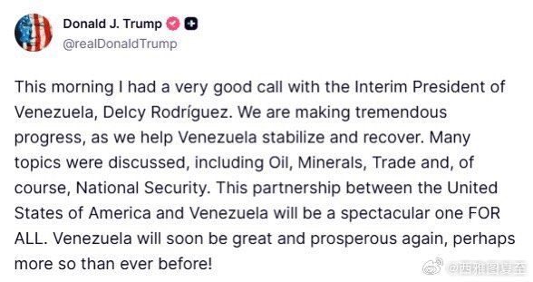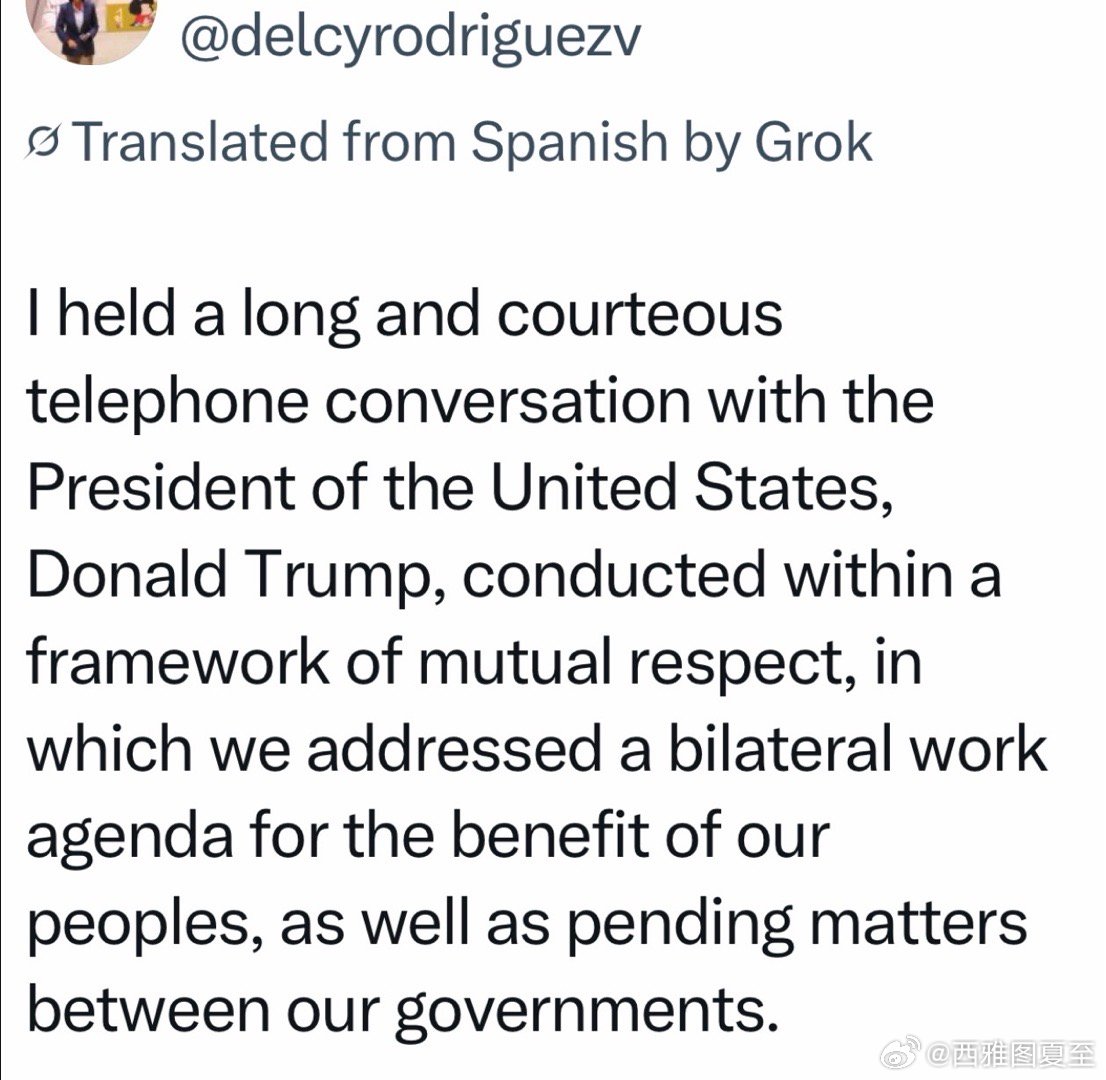 美国、委内瑞拉总统今天通话☎️双方声明,都是积极、肯定态度,强调合作,没有敌意