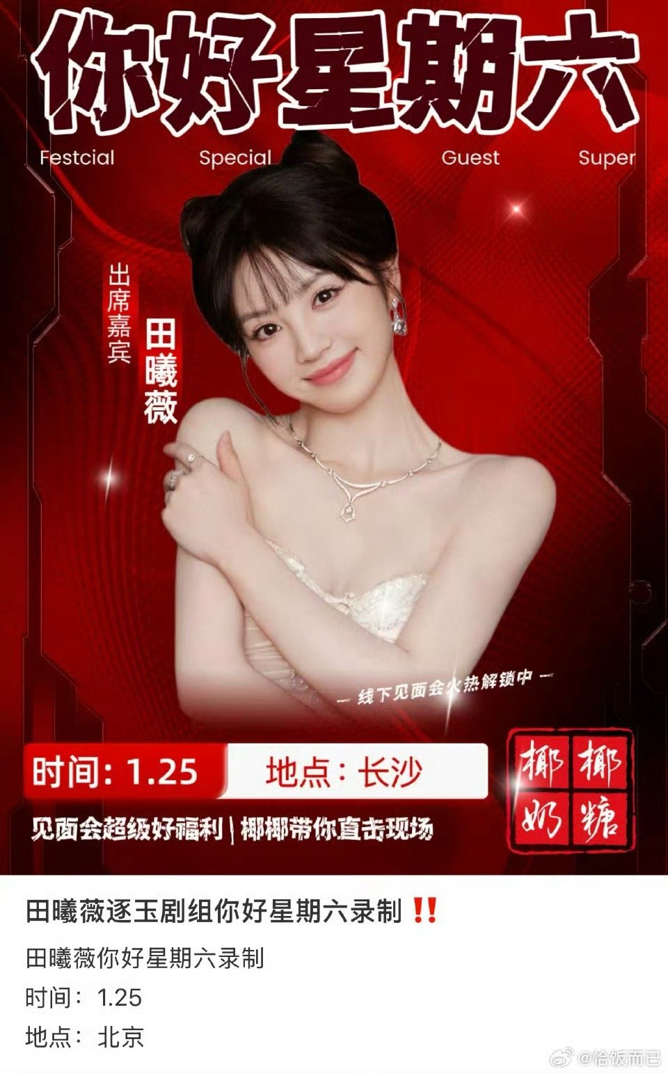 张凌赫田曦薇录制你好星期六张凌赫和田曦薇合体录制节目为《逐玉》剧宣,啊啊啊我将燥候这个你好星期六