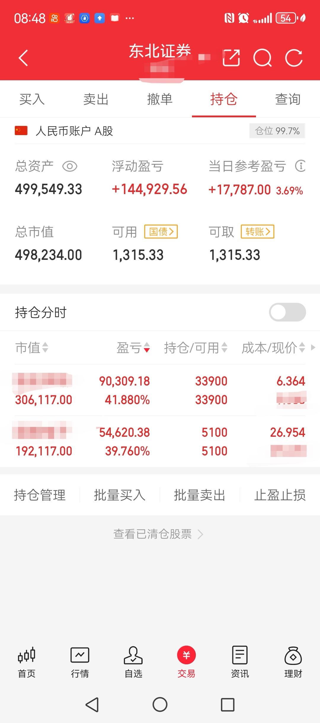 看得到的数据,从2022年6月份到现在,账户是310%的收益。其实从2019年到现在,将近900%。也就是说,5万块钱的本金做到现在将近50万。 目前持有的两个股票,一个持有时间一年多一点,一个持有时间是大概4个月,分别属于稀有金属板块和电子元器件板块。 目前,这两个股票开始加速。 我的理念是,好价格买入好股票,不赚钱不卖,甚至不赚大钱不卖。