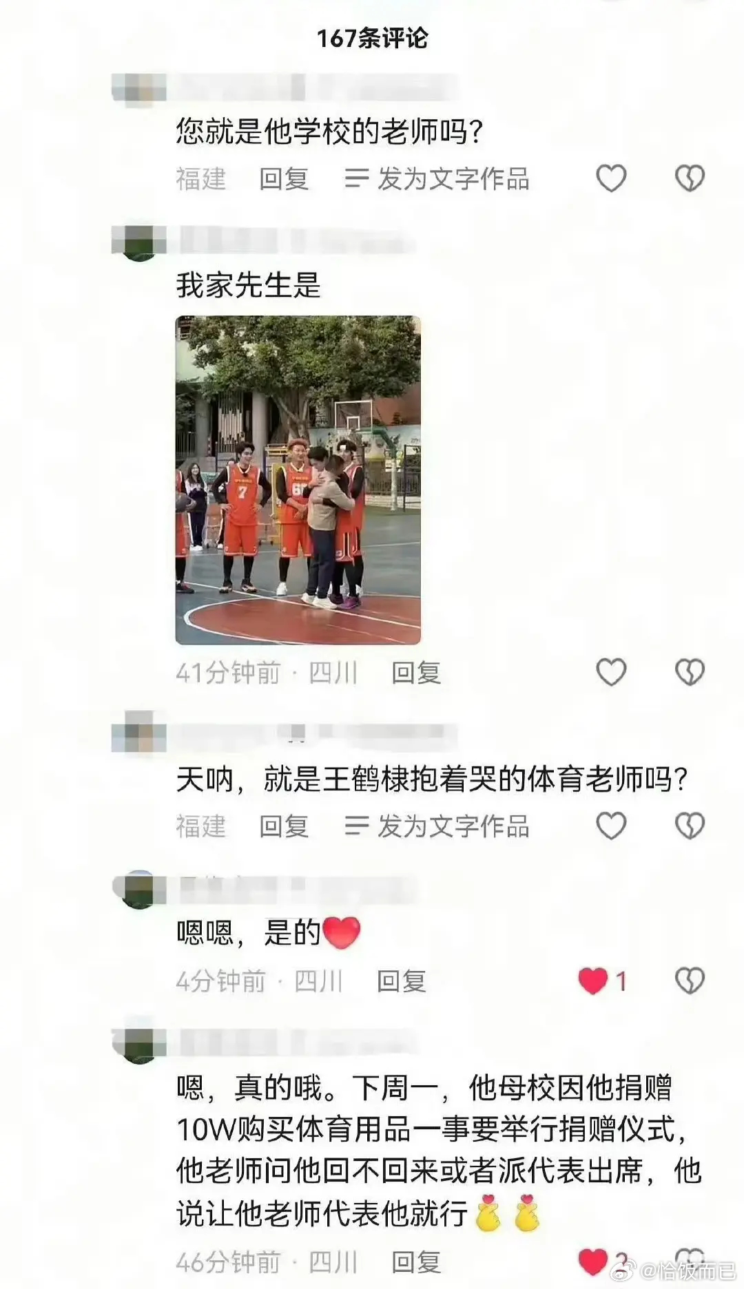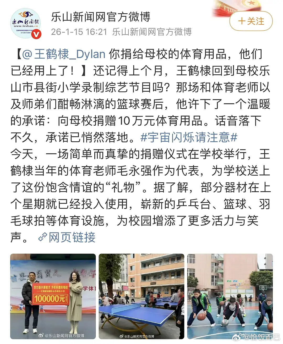 王鹤棣录个综艺真给小学捐了10万的体育用品