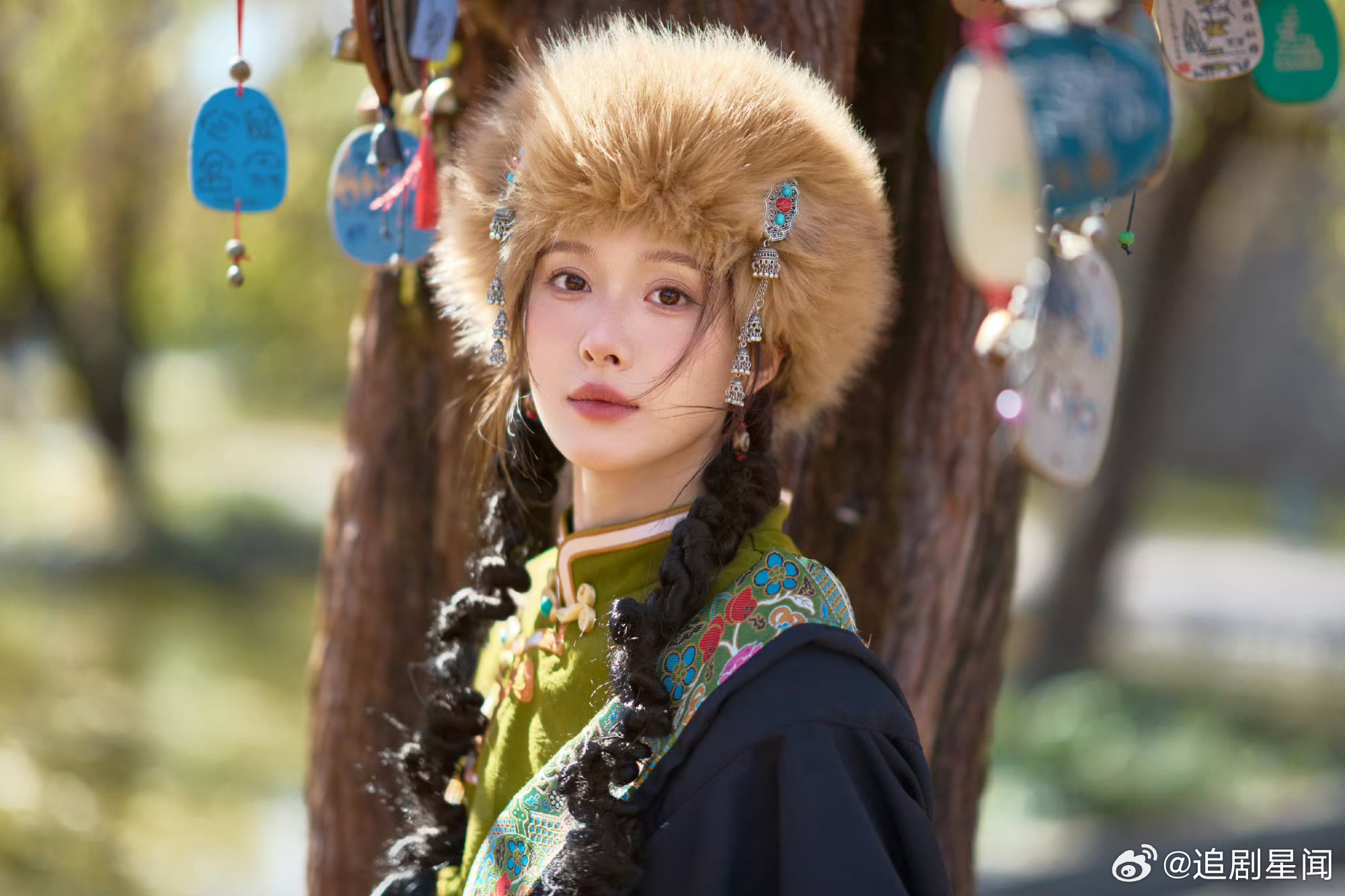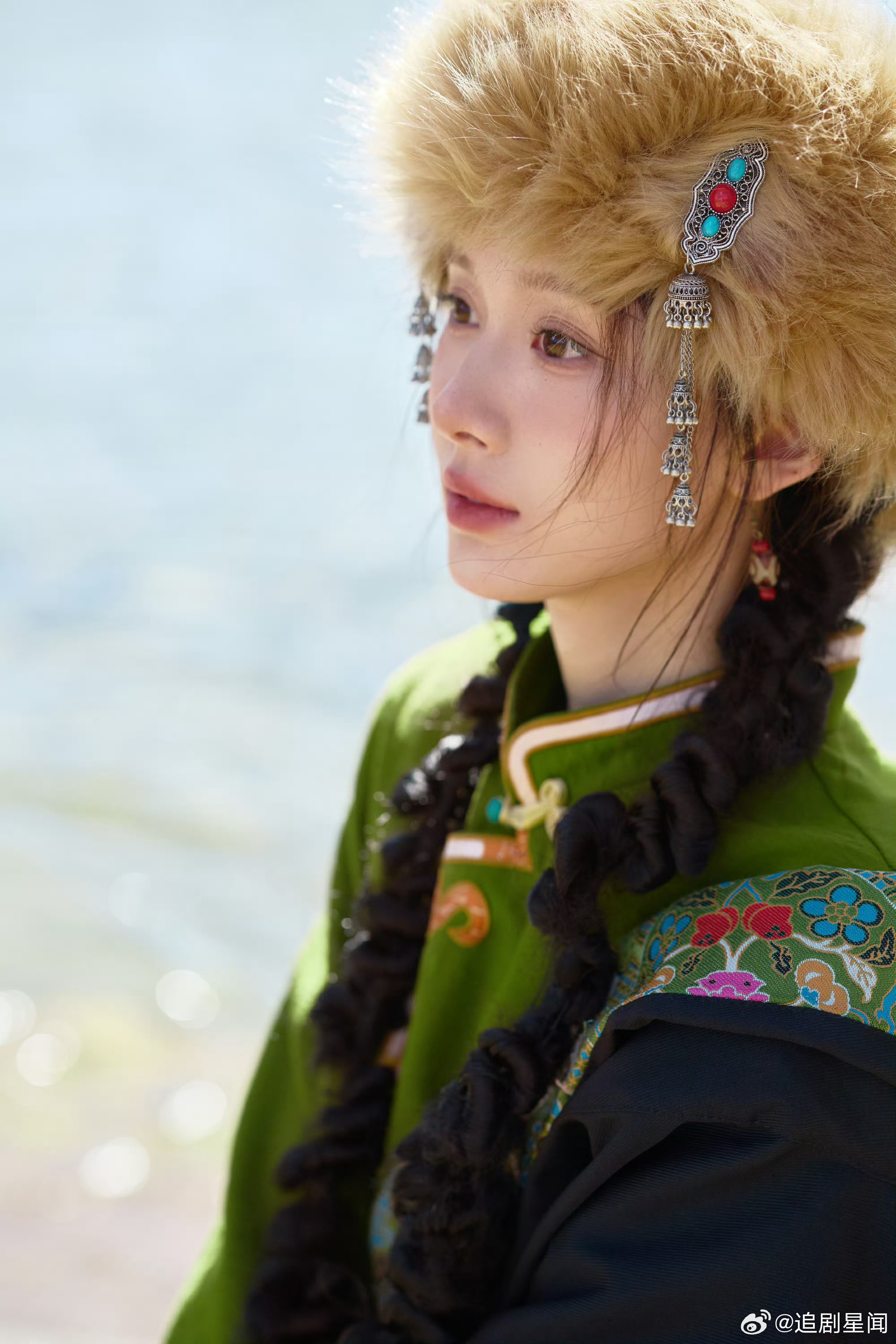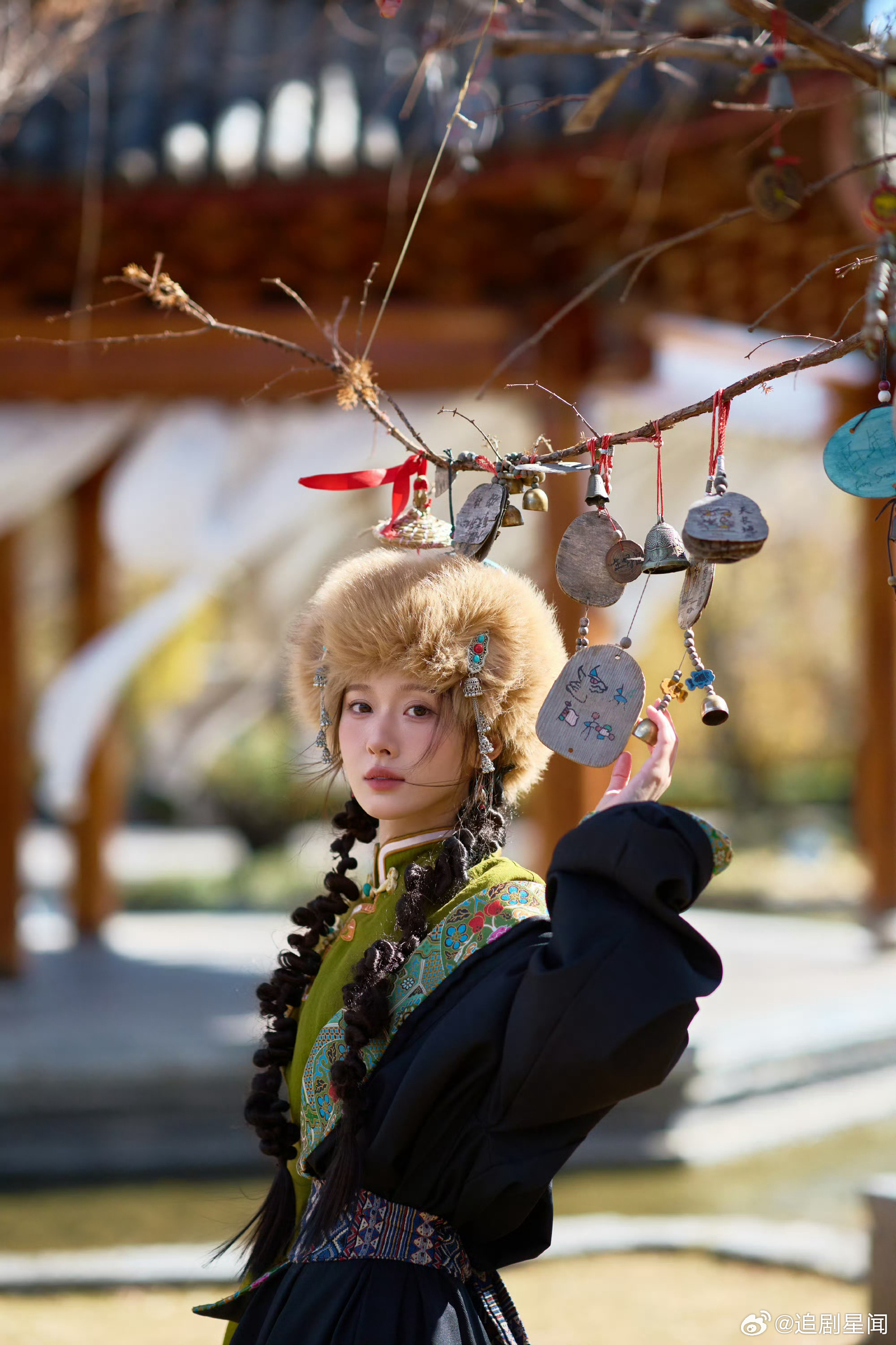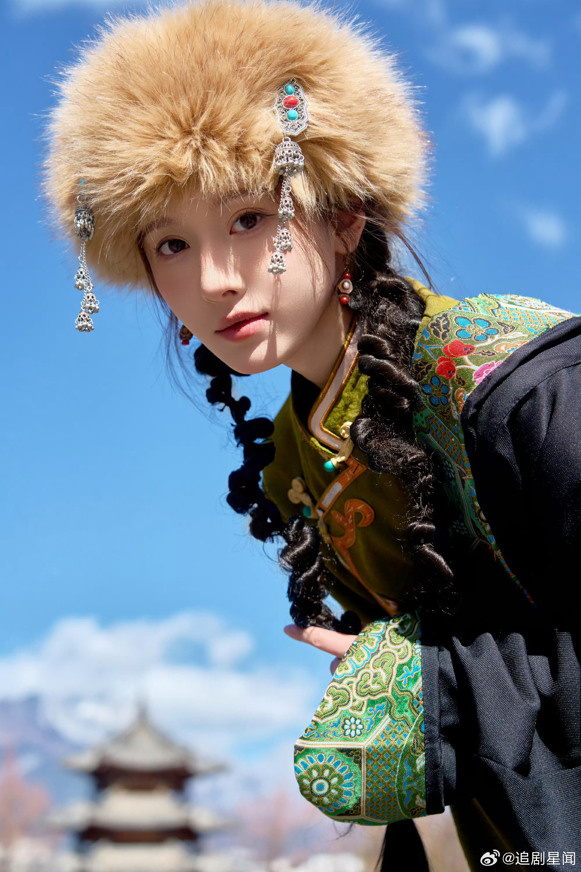 王子璇解锁藏风新造型,毛绒帽搭配刺绣服饰,手持转经筒的画面,既有民族韵味又有独特美感。王子璇