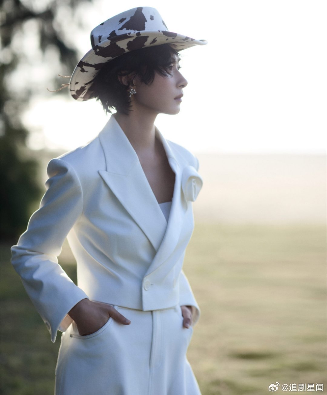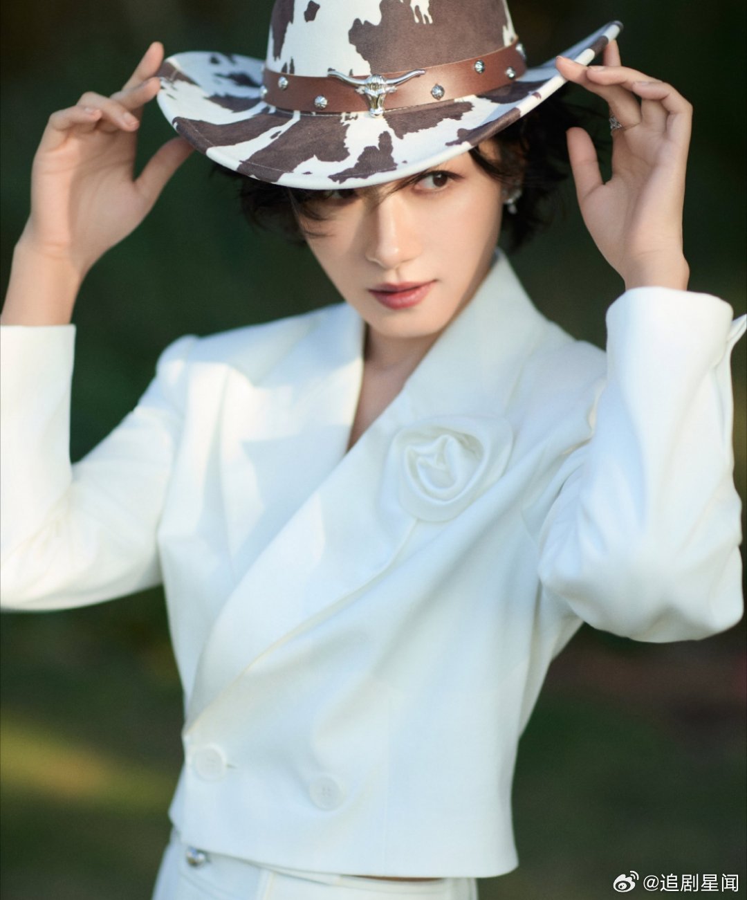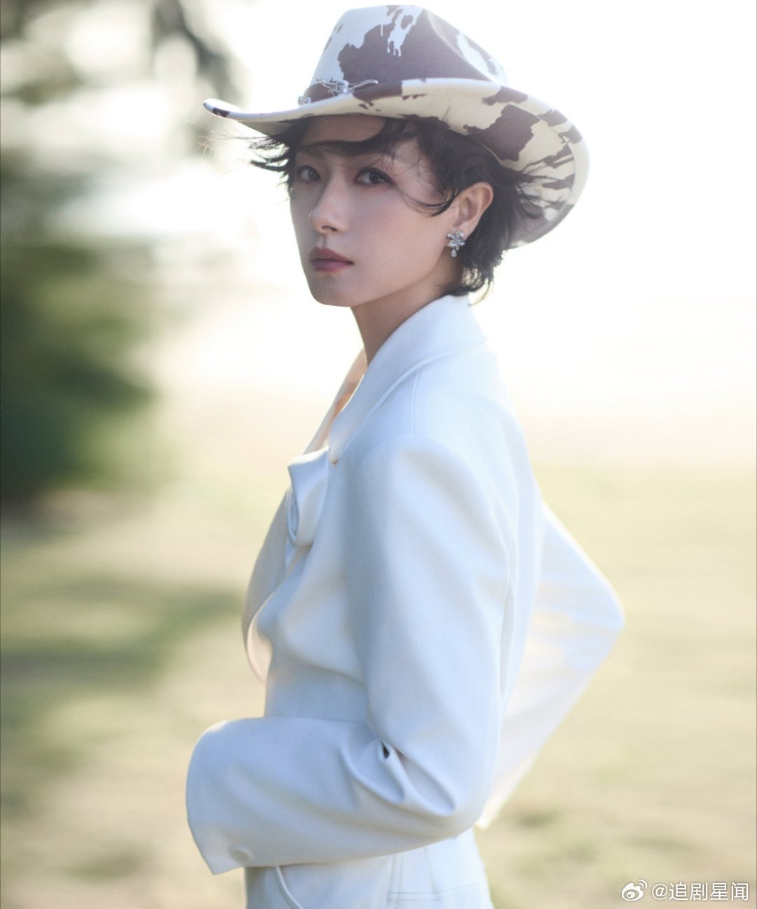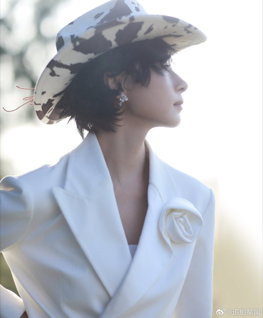 万茜这套西部风造型太飒了!白色西装搭配奶牛纹牛仔帽,利落又带着慵懒的氛围感,姐姐的时尚表现力直接拉满。万茜
