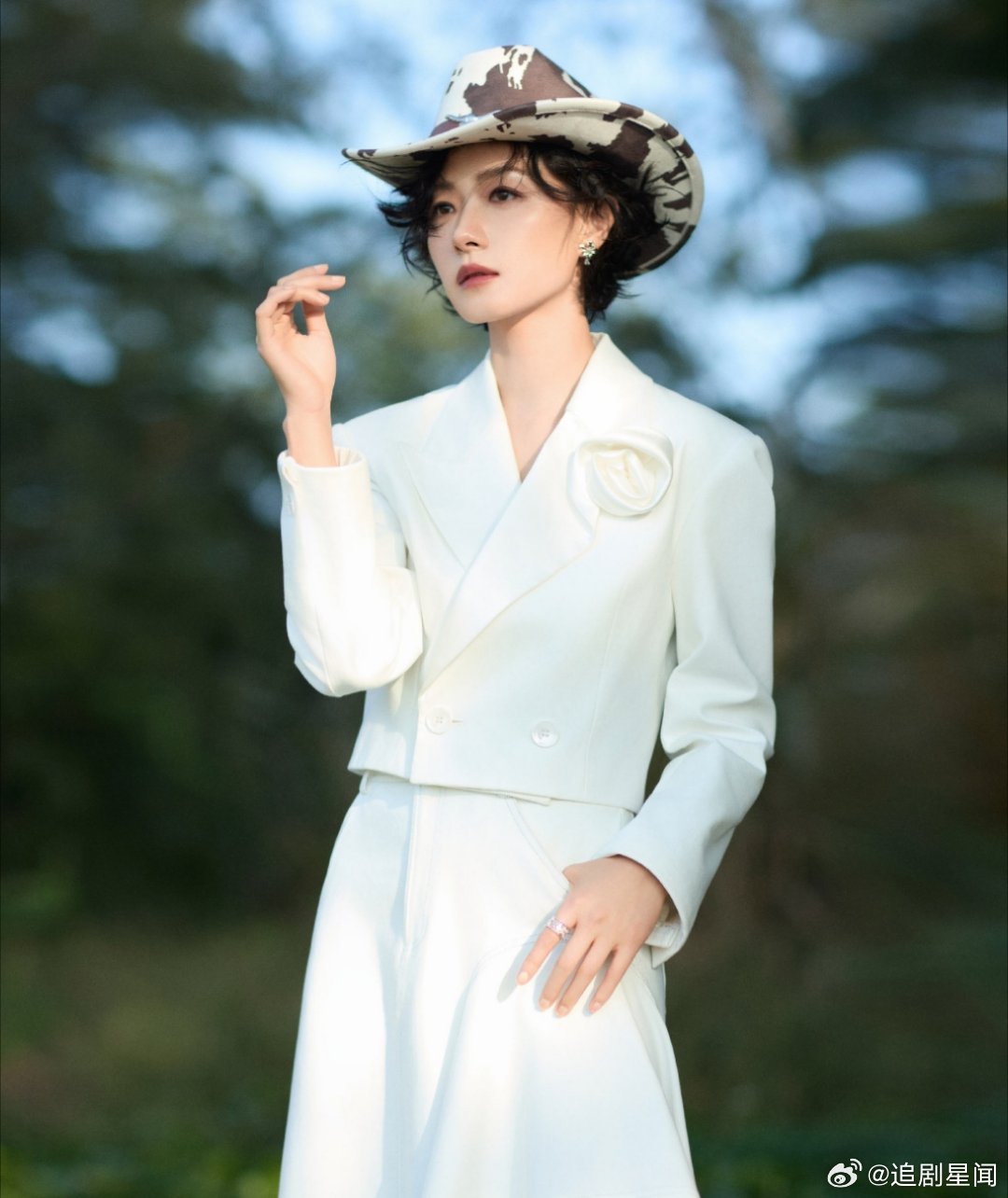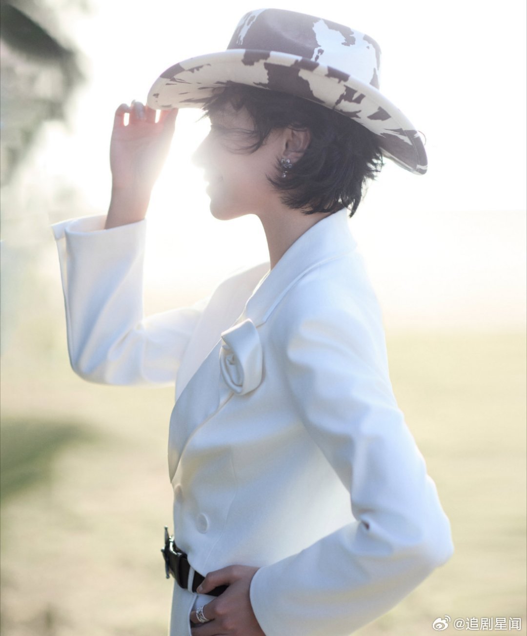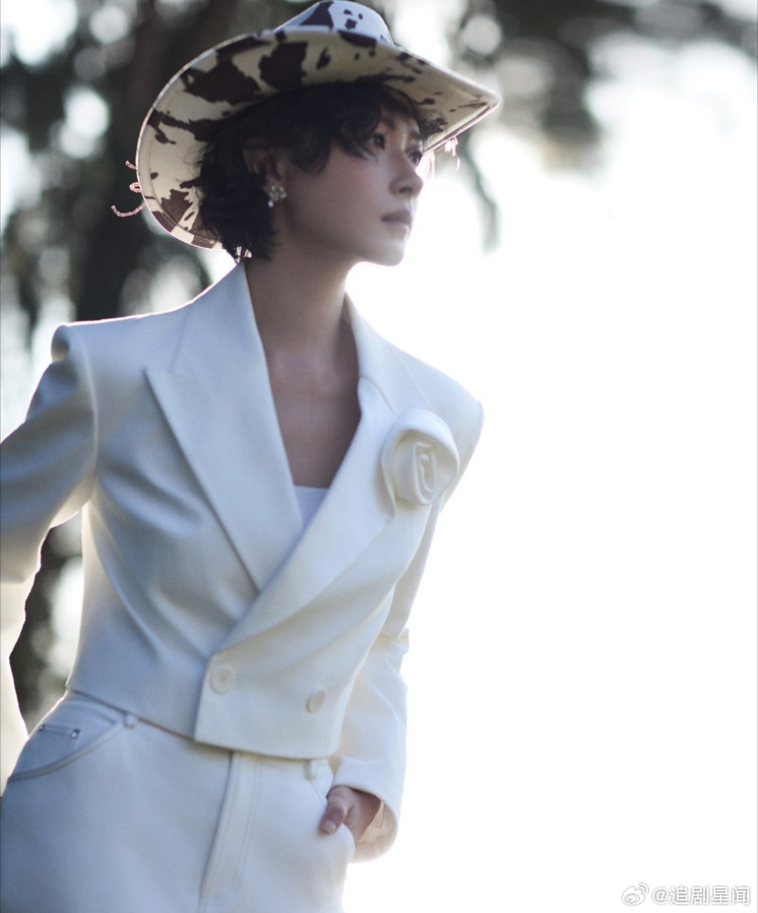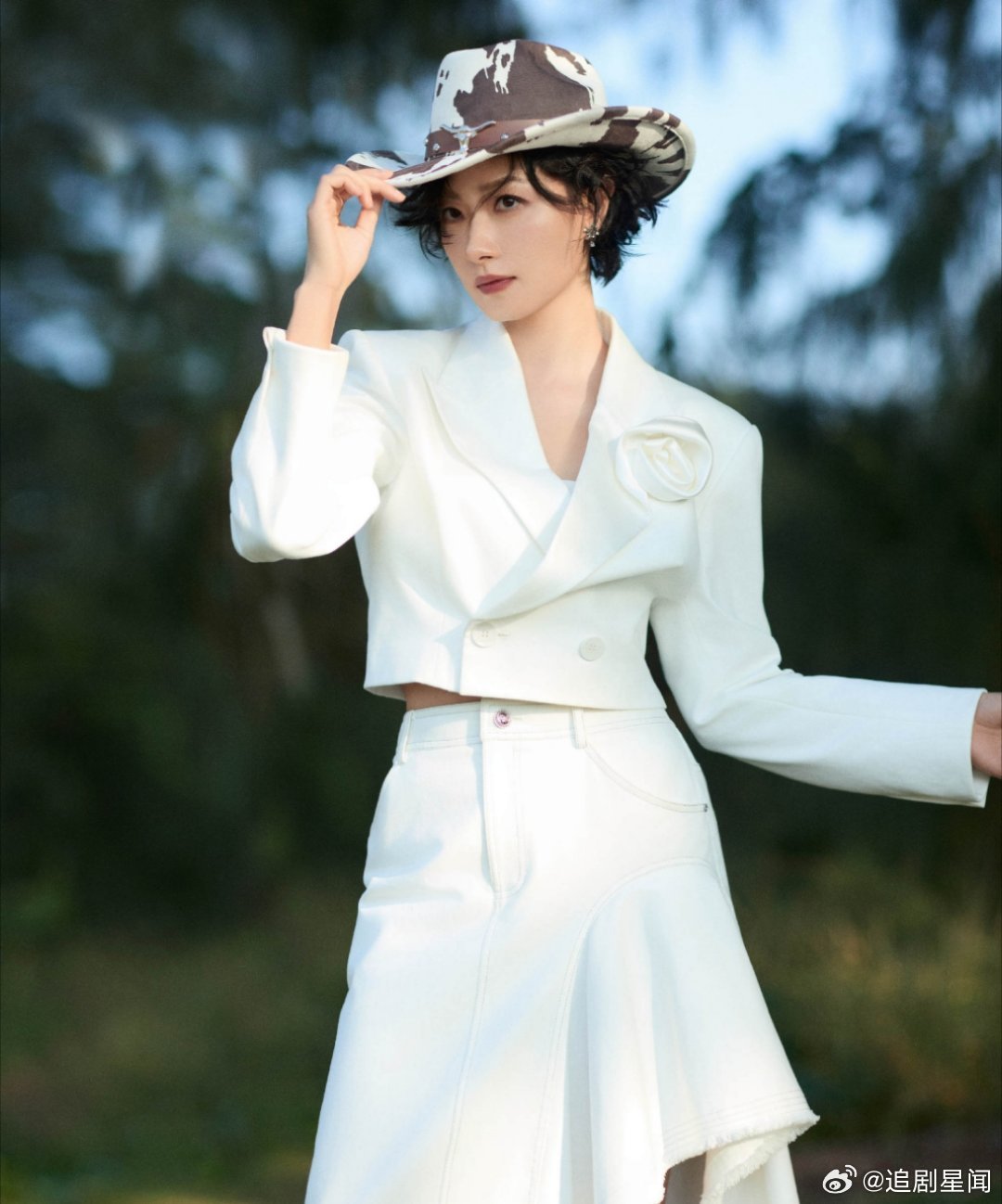 万茜这套西部风造型太飒了!白色西装搭配奶牛纹牛仔帽,利落又带着慵懒的氛围感,姐姐的时尚表现力直接拉满。万茜
