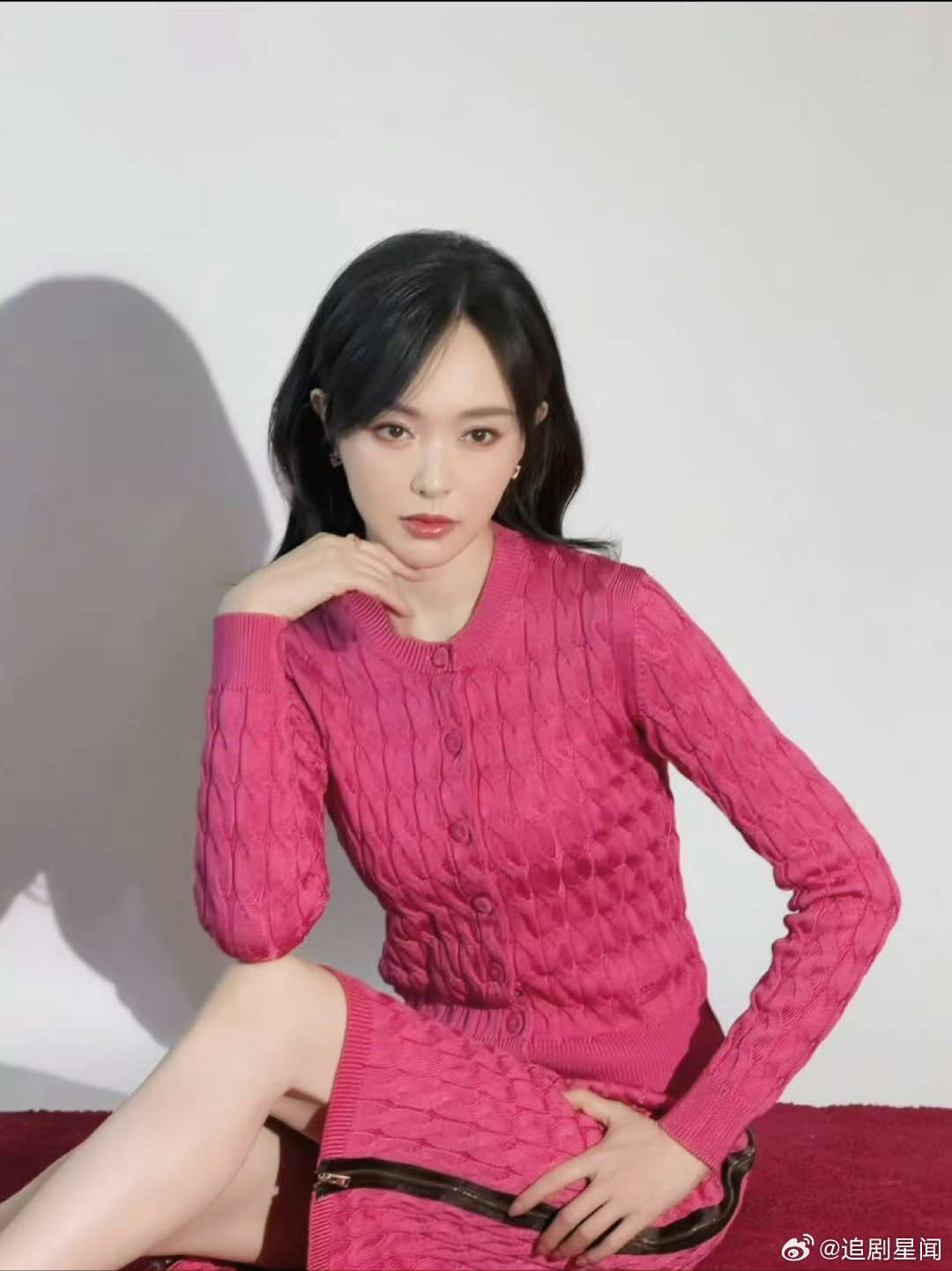 唐嫣粉裙捕捉到穿粉裙的甜妹唐嫣!玫红色针织裙衬得她肤白貌美,一举一动都甜到心坎里,谁能不爱。
