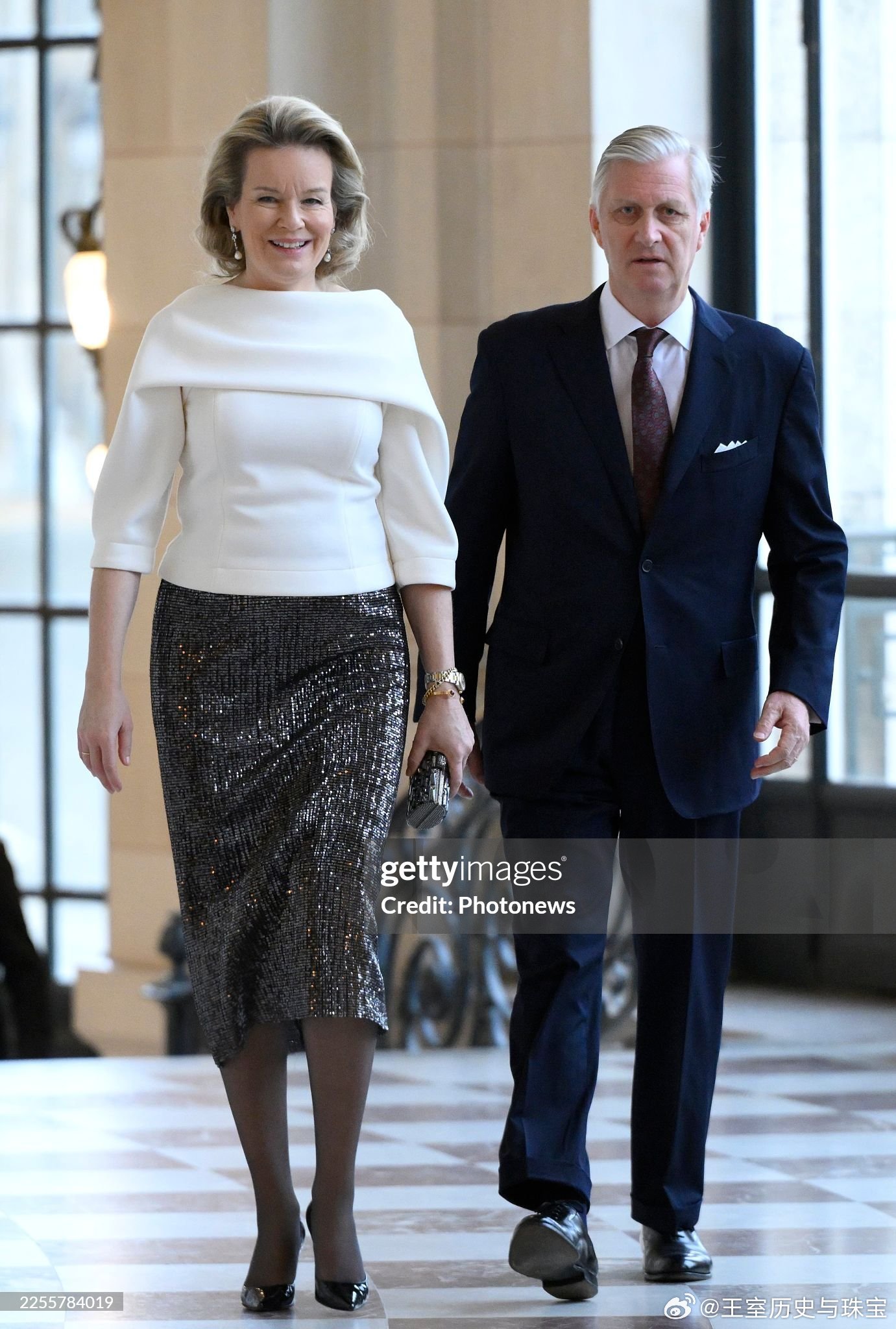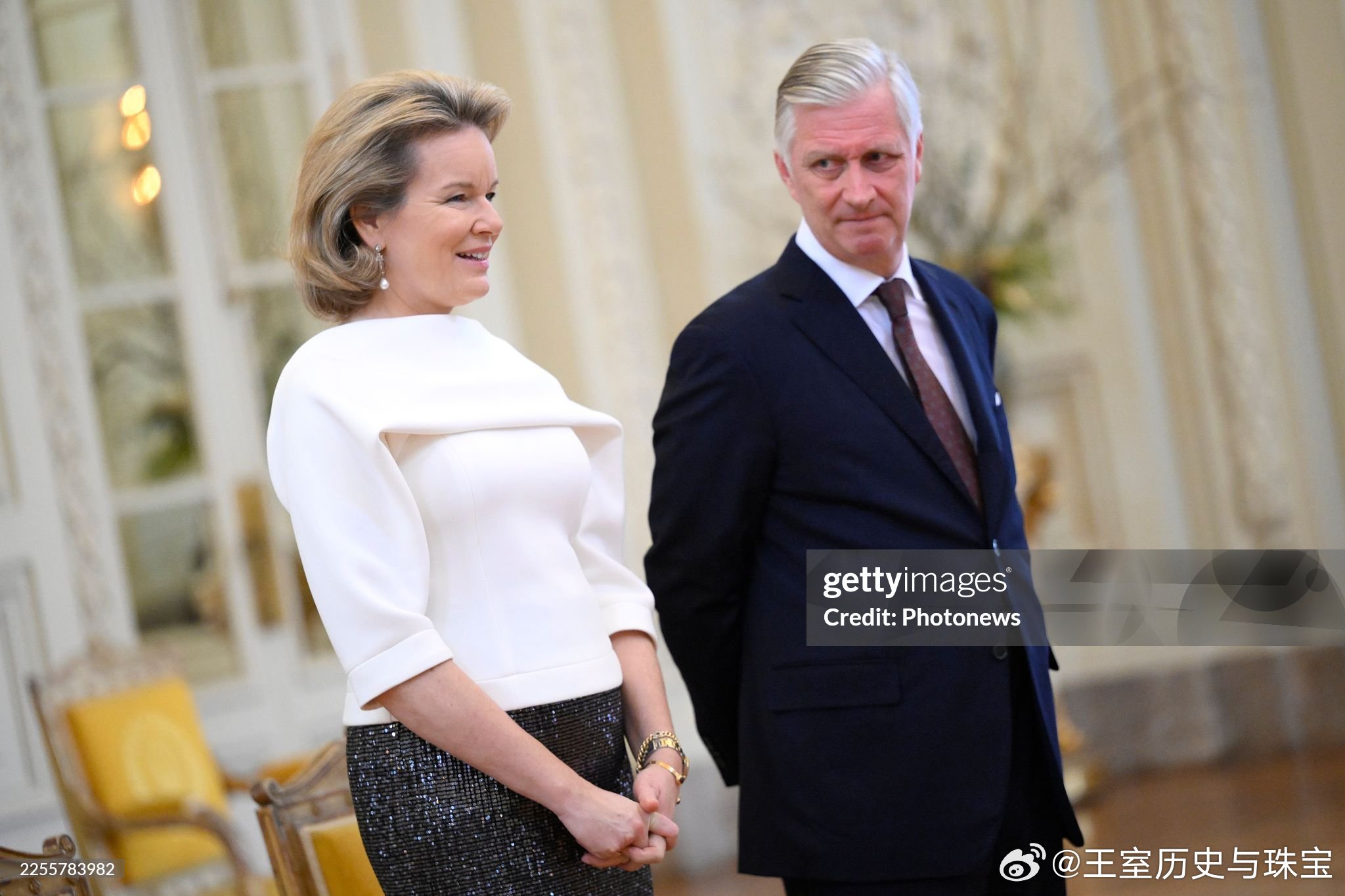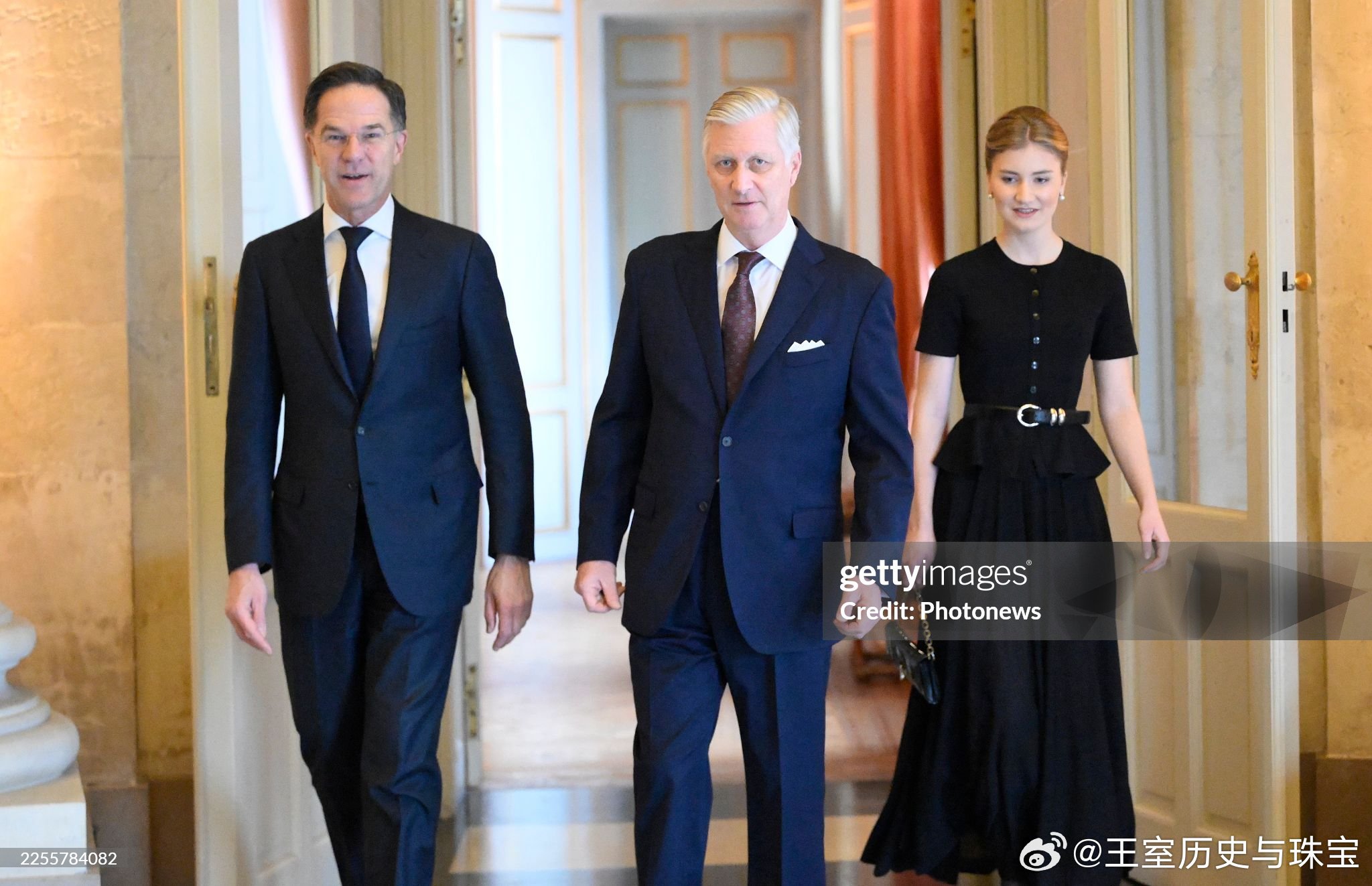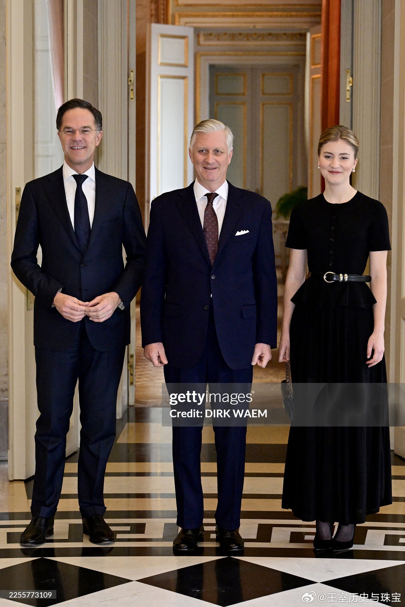 新闻 2026.1.15 比利时国王夫妇出席第三场新年外交接待会,接见北约成员国代表团、国际秘书处成员、北约军事代表以及北约盟军军事行动司令部官员,比利时国王菲利普带着长女伊丽莎白会见北约秘书长马克·吕特(荷兰前首相),玛蒂尔德的旧连衣裙来自Natan,小伊的黑裙来自Sandro,除了仪态问题,其余满分。