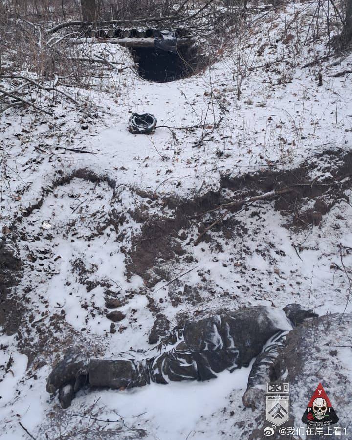 在乌克兰,冰天雪地的,俄军就这样躺在地上休息。