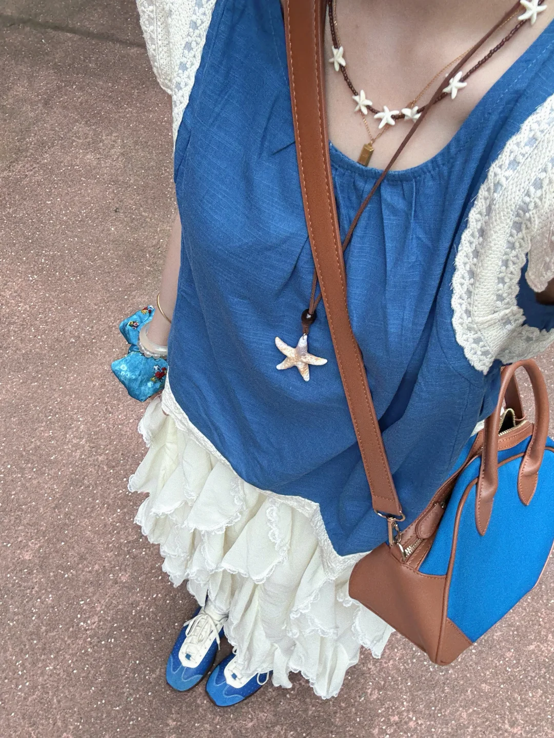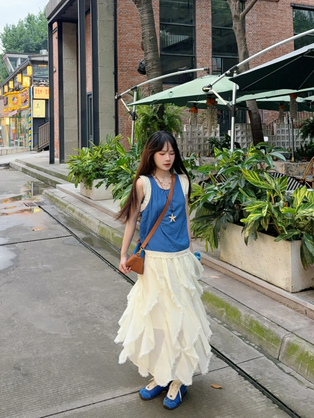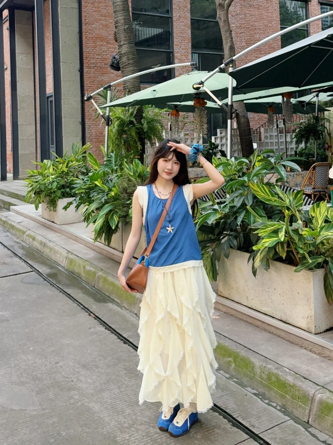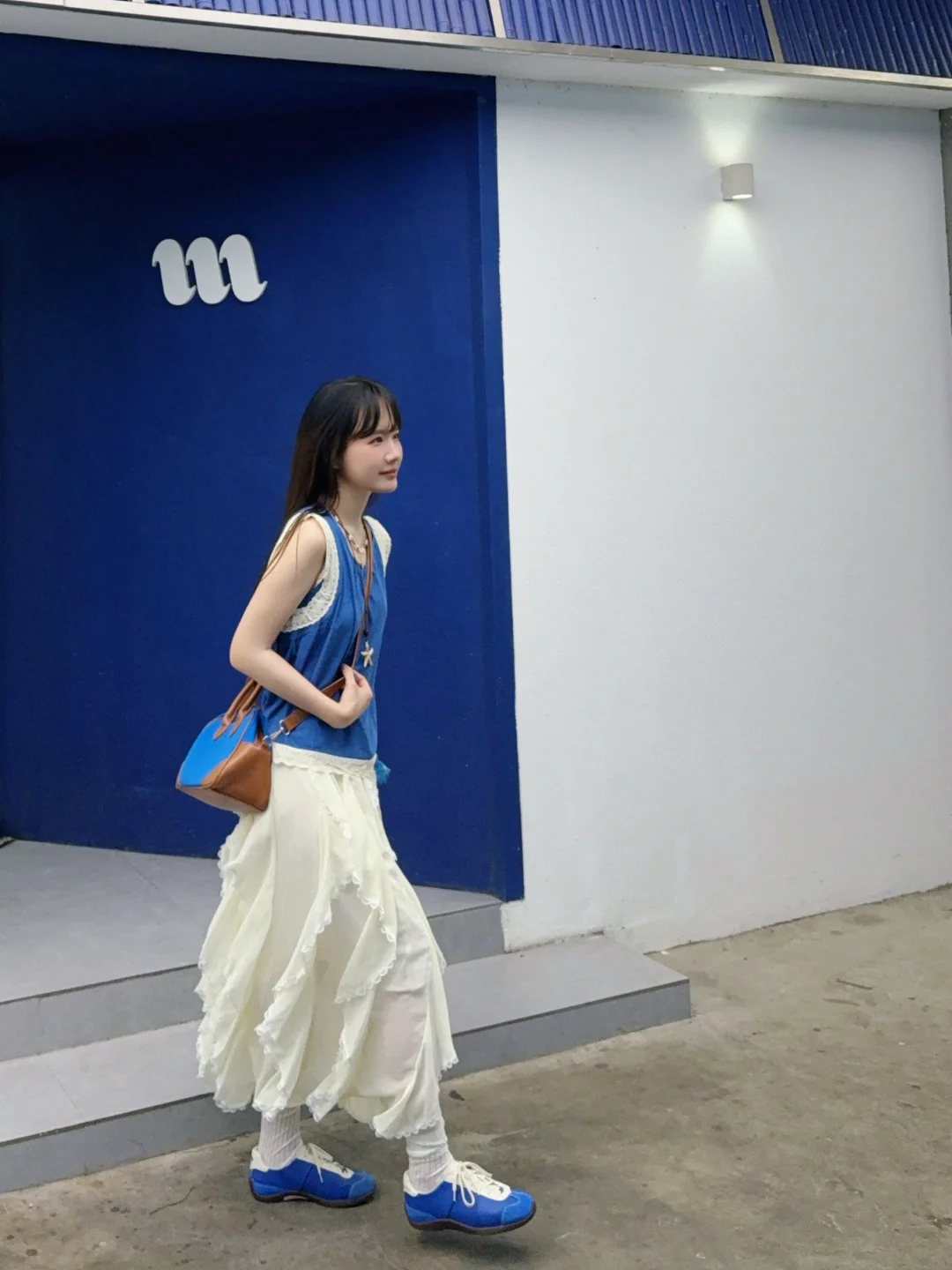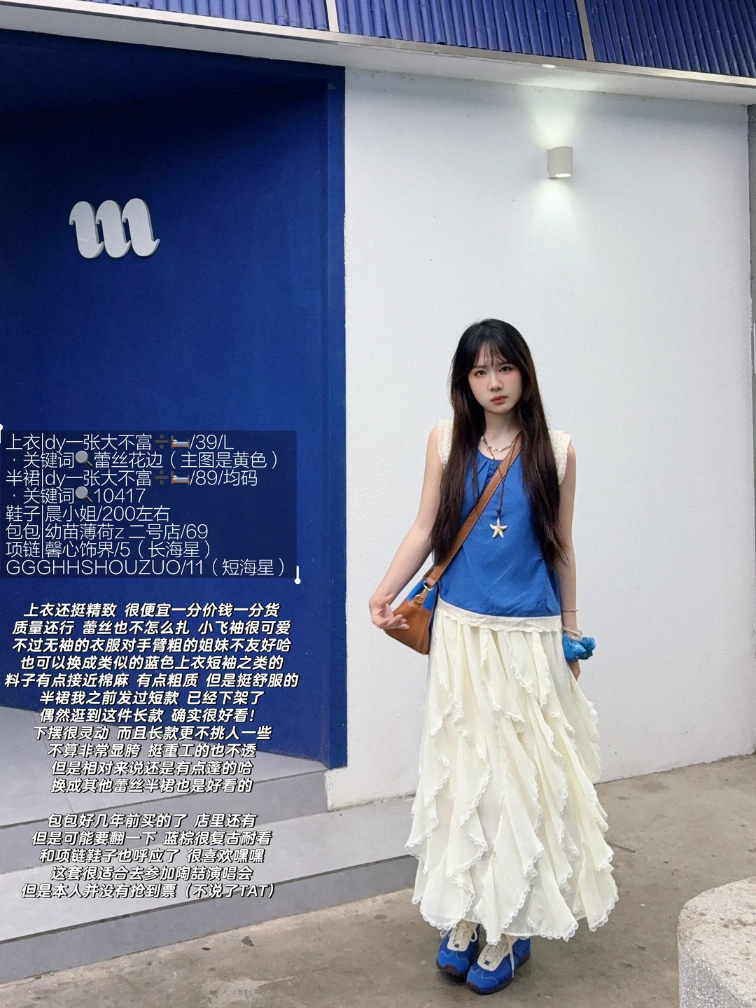 168/107 演唱会蓝色应援色穿搭来了哈哈哈 当时穿这套就想到去小奇迹咖啡拍照 果然很搭!!!🫰🏻🫰🏻 (不过JJ演唱会应援色是紫色 真是不凑巧哈哈哈) 这套确实适合参加演唱会 日常又好看~ 而且这个蓝色挺显白的 很夏日 蓝色其实也很适合海边~灵动飘逸又明媚 反正就是挺好看 便宜性价比还不错 不属于次抛衣服 可以重复搭配~ 上衣也可以搭配米白色牛仔裤或者山本裤 也可以搭配短款半裙花苞裙或者棕色卡其色的中裤 裙子秋冬搭配夹克皮衣肯定很好看!!