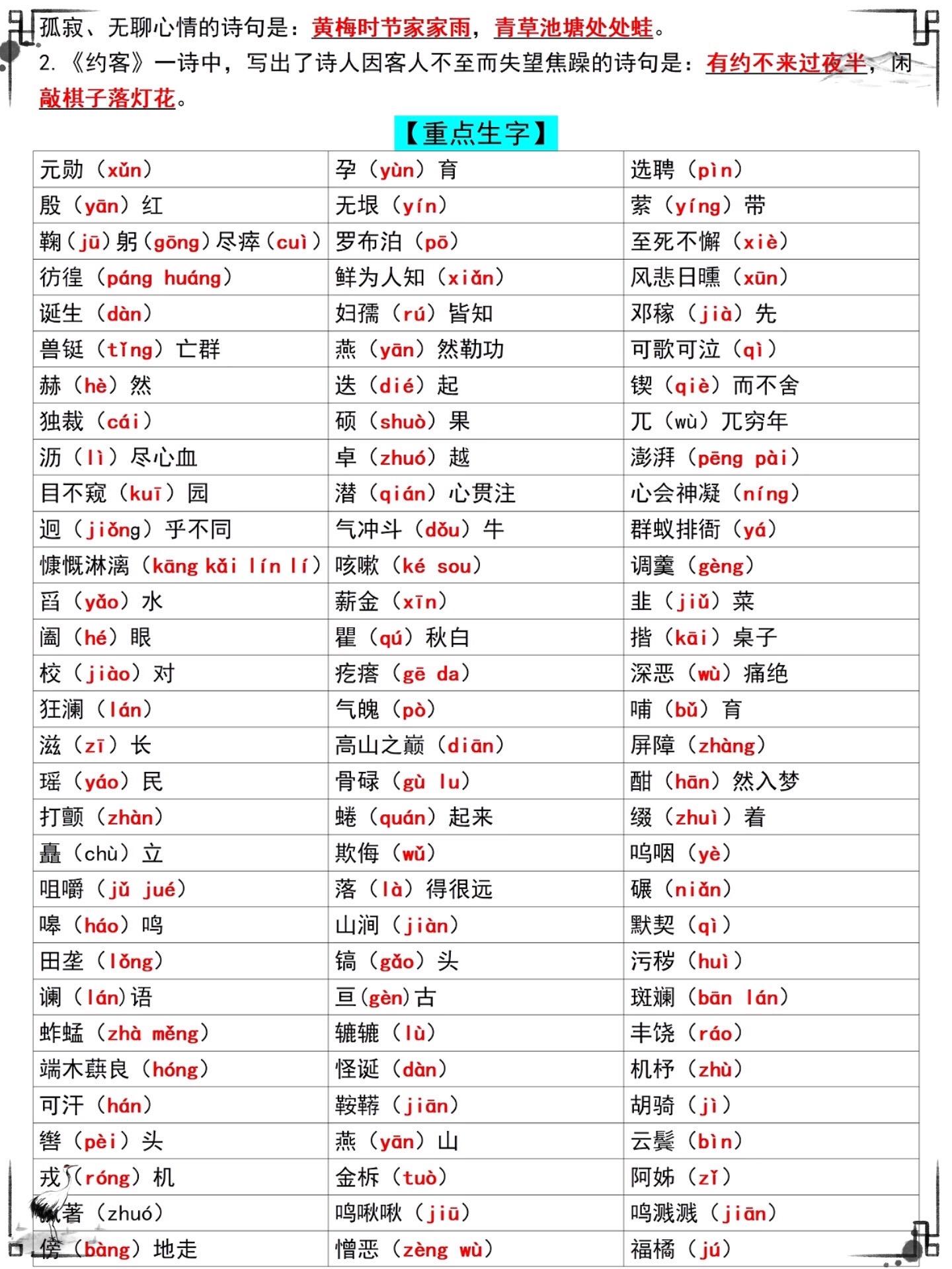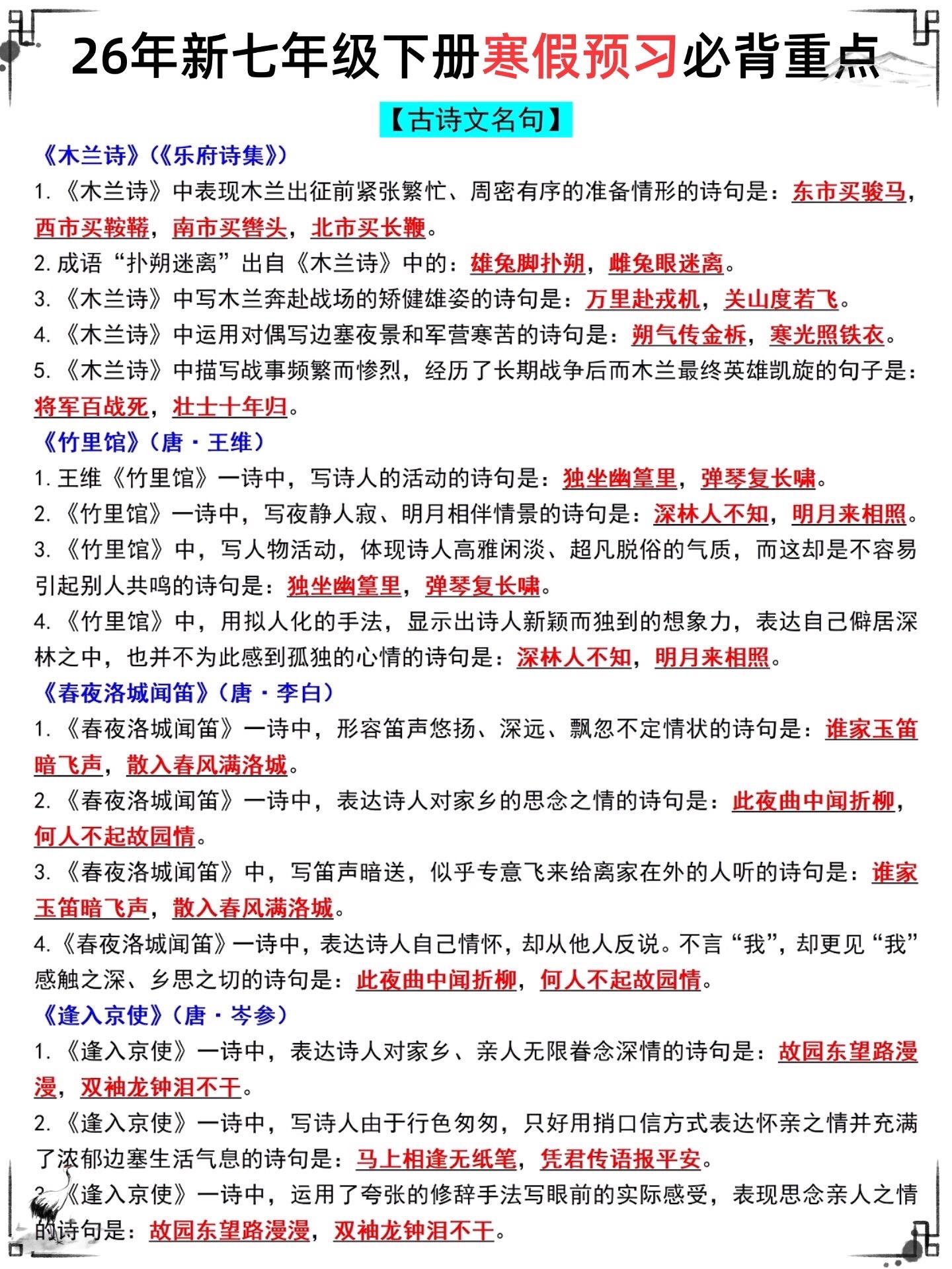 七年级下册语文寒假预习必备知识点汇总。七年级下册语文寒假预习必备知识点,老师给大家整理出来了。需要的家长可以直接打印一份给孩子预习,考试轻松拿高分!