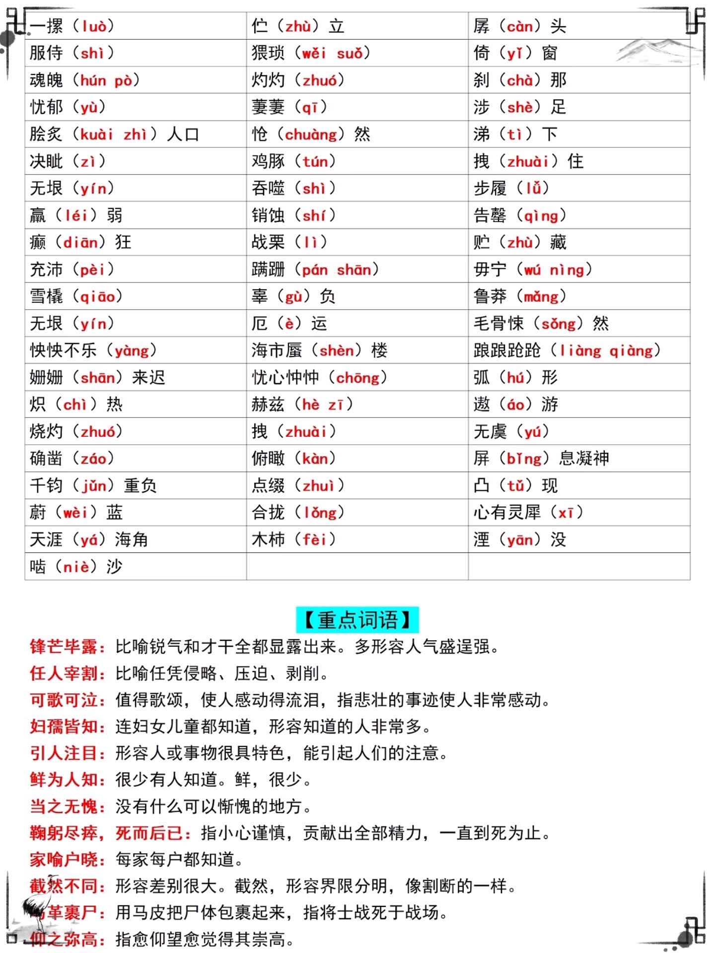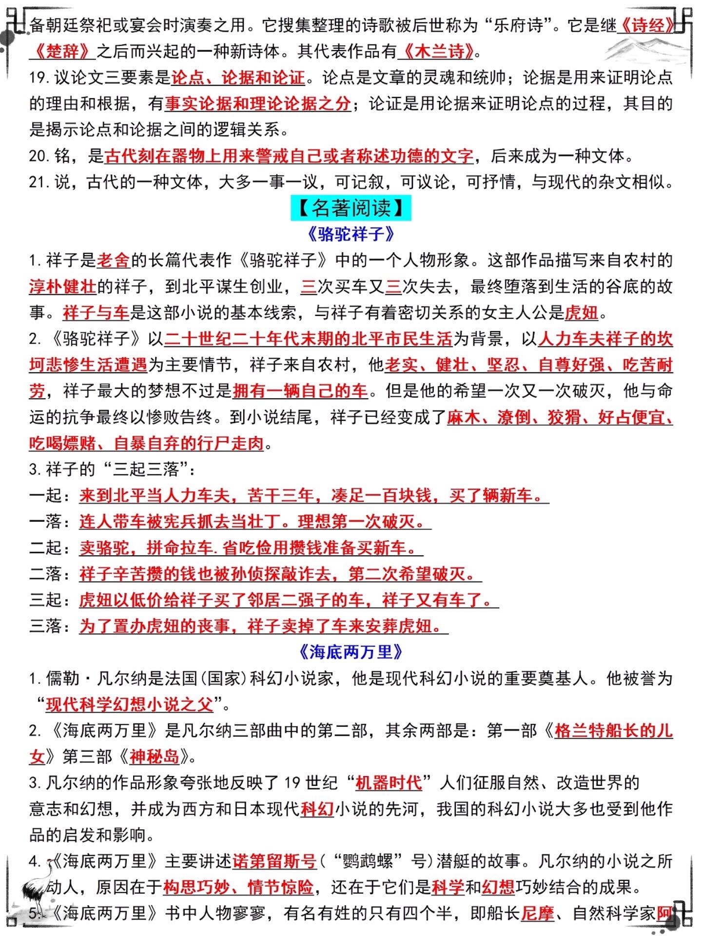 七年级上册《朝花夕拾》重点核心考点复习。七年级上册朝花夕拾重点必背,老...