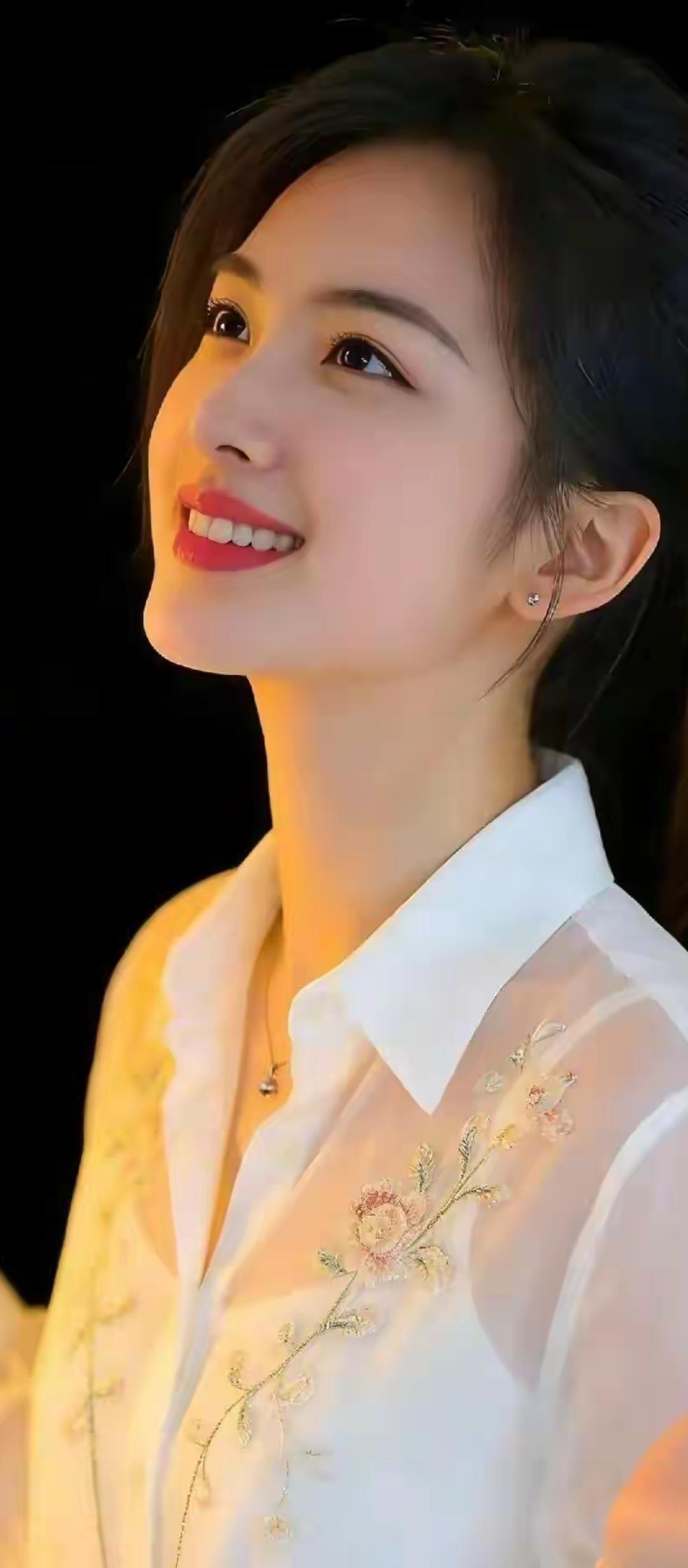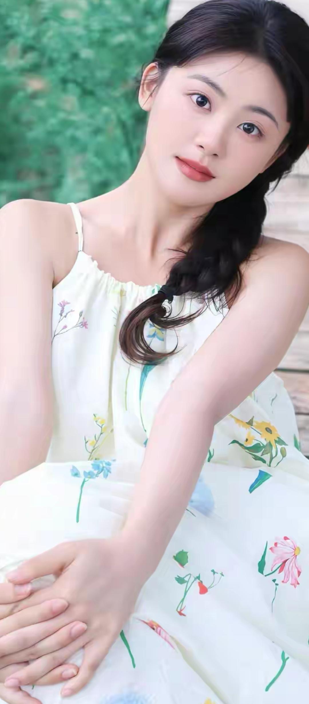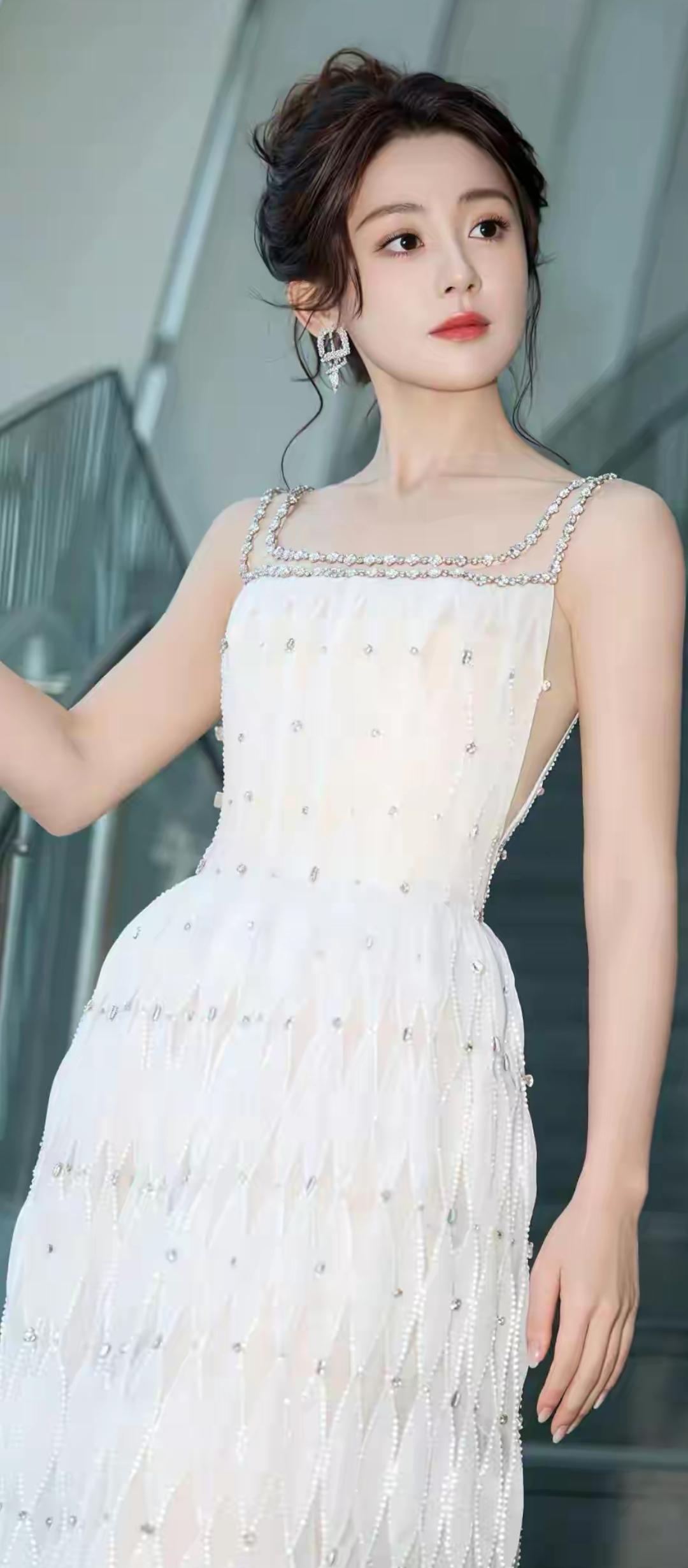 优雅低垂的眼眸,精致的妆容,散发着温柔与优雅的气质。
