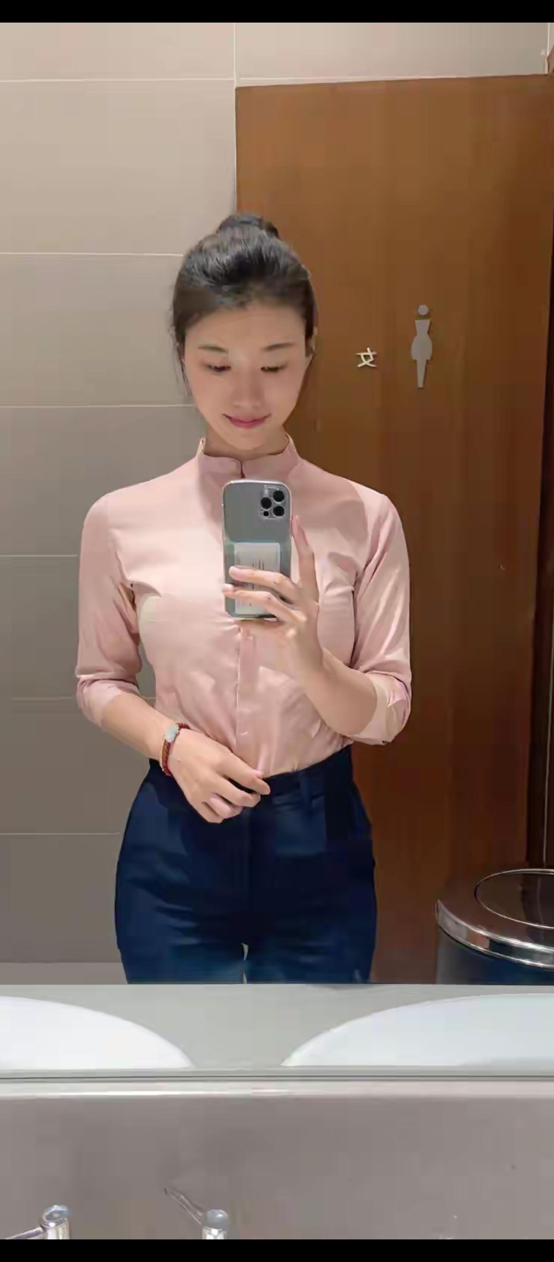 粉嫩衬衫搭配深色裤子,元气满满的一天!💕✨