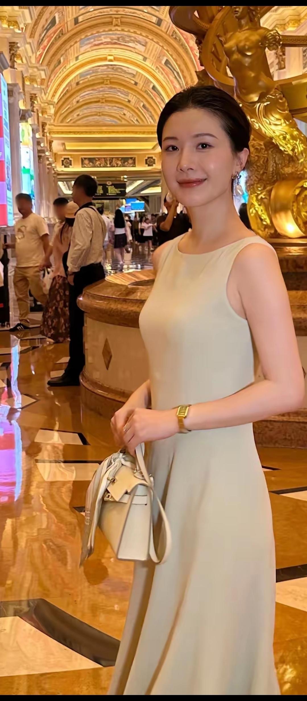 优雅低垂的眼眸,精致的妆容,散发着温柔与优雅的气质。