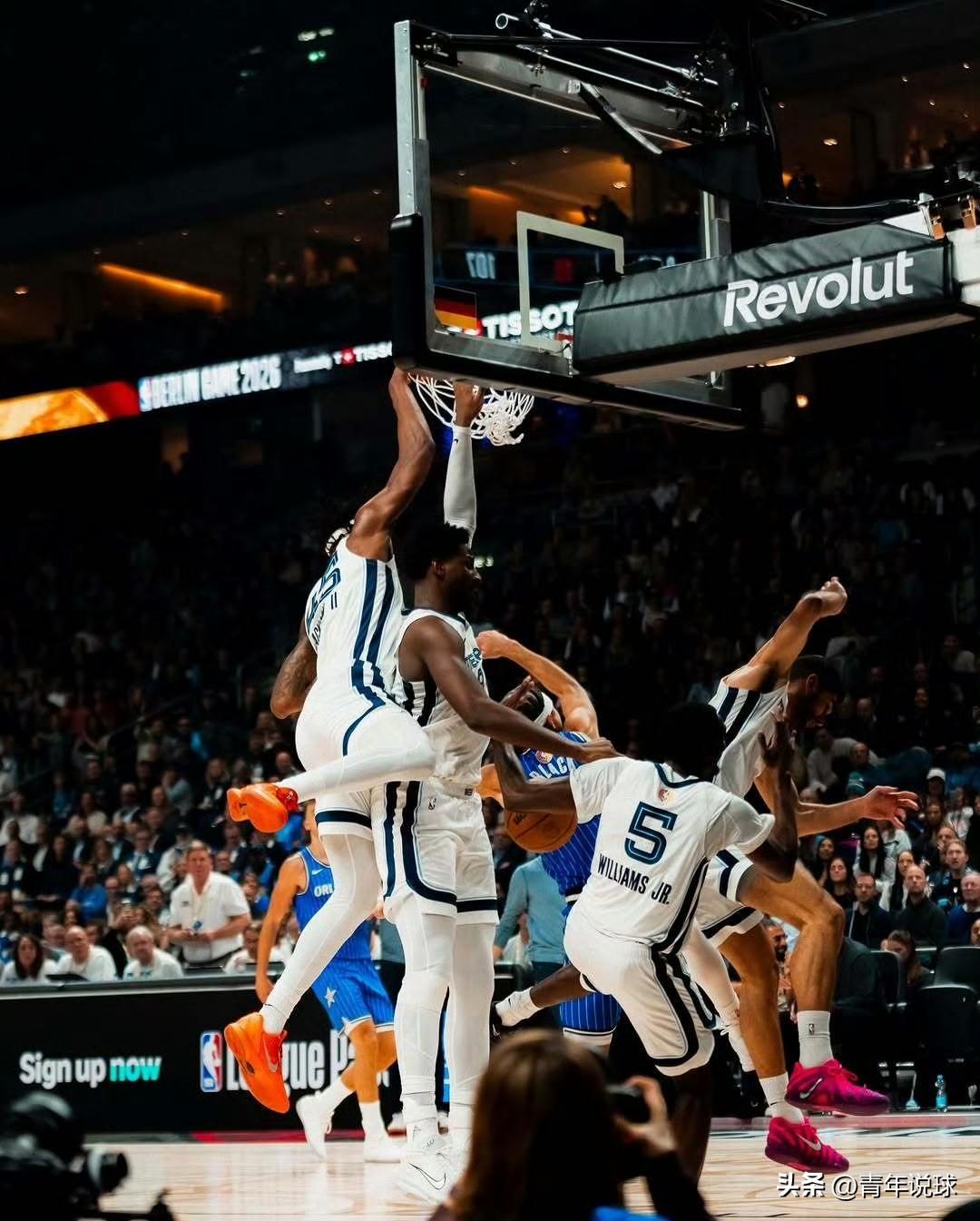 NBA名场面!布莱克神奇一扣四! 今天魔术对阵灰熊的比赛,最后2分32秒,双方战成107平,小贾伦-杰克逊出现失误,魔术抢断后发动快攻,布莱克接球后加速推进直捣黄龙,在篮下迎着小贾伦-杰克逊、阿尔达玛等4名球员的围追堵截完成逆天扣篮,技惊四座。这精彩的瞬间被场边摄影师记录了下来,NBA又多了一个名场面。 全场比赛,布莱克得到21分6篮板7助攻,正负值为全队最高的+17,表现非常出色,帮助球队以118-111力克灰熊队,取得两连胜。