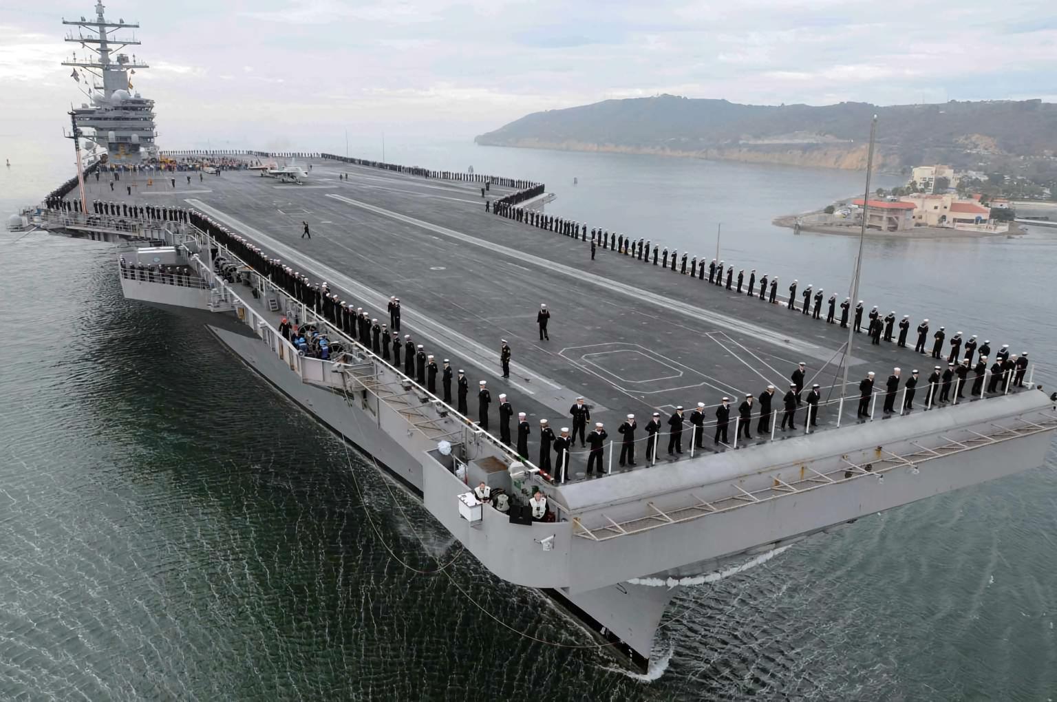 “尼米兹”级航空母舰“尼米兹”级航空母舰(Nimitz aircraft carrier)是美国海军现役的核动力航空母舰,一共建造了10艘。“尼米兹”级航空母舰是美国海军远洋战斗群的核心力量,也是世界上排水量最大、性能最先进的现役航空母舰。“尼米兹”级航空母舰的首舰于1968年开始建造,1975年正式服役,而十号舰“布什”号于2009年开始服役。所有的“尼米兹”级航空母舰都是由位于弗吉尼亚州纽波特的纽波特纽斯造船厂建造,该单位也是美国境内唯一有能力建造核动力舰艇的设施。“尼米兹”级的前三艘和后七艘的规格略有不同,因此也有人将后七艘称为“罗斯福”级。不过,美国海军官方对这两种舰只构型并不做区别,一律称呼为“尼米兹”级。“尼米兹”级航空母舰采用封闭式飞机甲板,机库甲板以下的船体是整体的水密结构,由内外两层壳体组成。机库甲板以上共分9层,飞行甲板以下为4层,飞行甲板上的岛形上层建筑为5层。机库略偏右舷,约占舰长的三分之二,机库四周布置有飞机维修车间,前方是士兵住舱和锚甲板。左舷其余部分布置办公室、控制室、通道等,并设有6个飞机加油站,以便为机库内的飞机加油。机库和飞行甲板之间为吊舱甲板,布置有航空联队的办公区和作战指挥舱室。“尼米兹”级航空母舰装备4座升降机、4台蒸汽弹射器和4条拦阻索,可以每20秒弹射出一架作战飞机。舰载作战联队中的机型配备根据作战任务性质的不同也有所不同,可搭载不同用途的舰载飞机对敌方飞机、船只、潜艇和陆地目标发动攻击,并保护海上舰队。以它为核心的航空母舰战斗群通常由4~6艘巡洋舰、驱逐舰、潜艇和补给舰只构成。“尼米兹”级航空母舰的自卫武器为24枚RIM-7“海麻雀”防空导弹和4座“密集阵”近防系统。该级舰可搭载90架舰载机,均是美国海军目前最先进的舰载机型。|