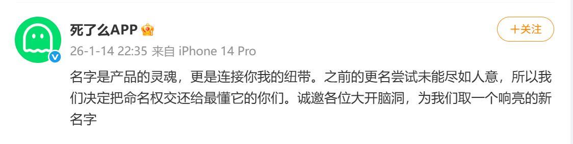 最近一个叫“死了么”的APP火了。定价8块钱,前两天还冲上了苹果应用商店付费榜第一。 这APP是个给独居人用的安全工具。你每天得手动签到,如果连着几天没签,系统就会自动给你预设的紧急联系人发邮件提醒,大概是怕你出意外没人知道。 因为名字太直接,可能也引起了一些讨论,团队在1月13号把它改成了“Demumu”。创始人说,改名一是因为外部有点压力,二是也想为以后出海做准备。“Demumu”这个新名字是硬造出来的词,前面“De”来自英文“Death”(死亡),蹭原来“死了么”的热度;后面“mumu”想弄得可爱点,显得亲切。 现在这APP热度还在涨,已经扩展到全球40多个国家了。在中国还是付费榜第一,在美国、英国这些地方也排到了第二。用户量涨得很猛,估值都快上亿了。 有意思的是,1月14号晚上,官方又发话说,觉得新名字还是不够好,要把命名权交给用户,让大家一起来取个“响亮的新名字”。 我的看法是,这产品点子确实戳中了一些独居人士的需求。但名字这事,一开始用“死了么”明显是博眼球营销,虽然火了,但也确实可能让人不舒服,尤其对目标用户群体可能不太吉利。现在想改名,不管是“Demumu”还是向用户征集,都说明团队意识到名字不能光有流量,还得合适、能长远。就看最后能不能找到一个既有关注度,又不那么“冲”的名字了。