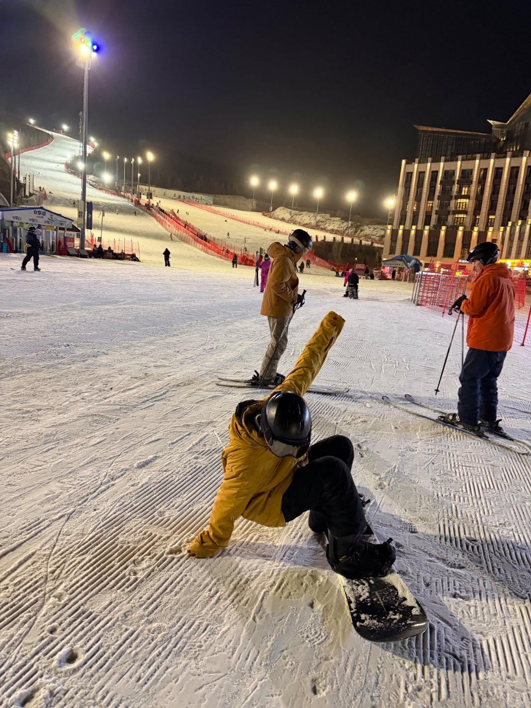 图一是阿兔第一次滑雪,的AI假想图,其实际上是图2,一晚上没站起来过,净摔跤了 张家口·翠云山银河滑雪场