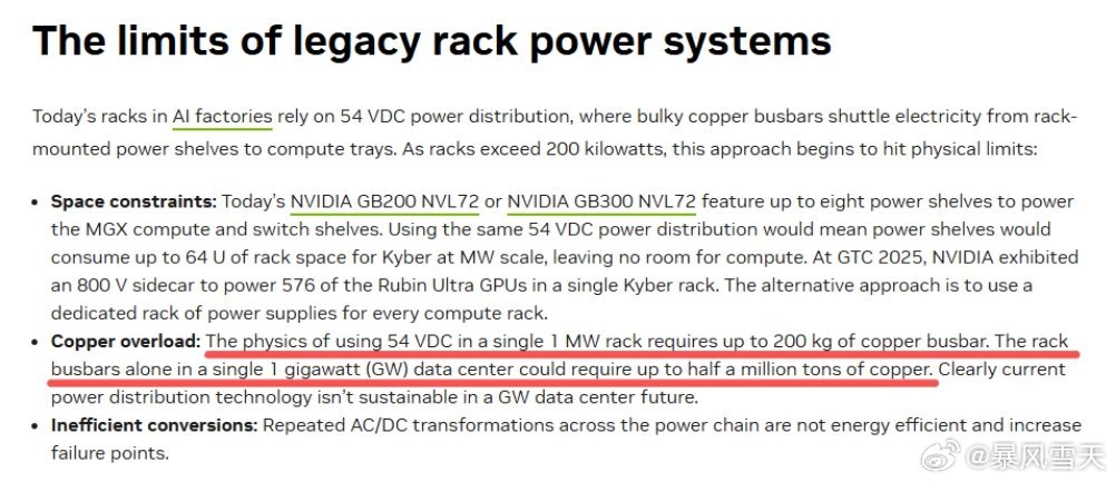 英伟达修改该数据,那么人工智能数据中心的铜需求就要重估。从50万吨修改到200吨,给铜需求开了国际玩笑。