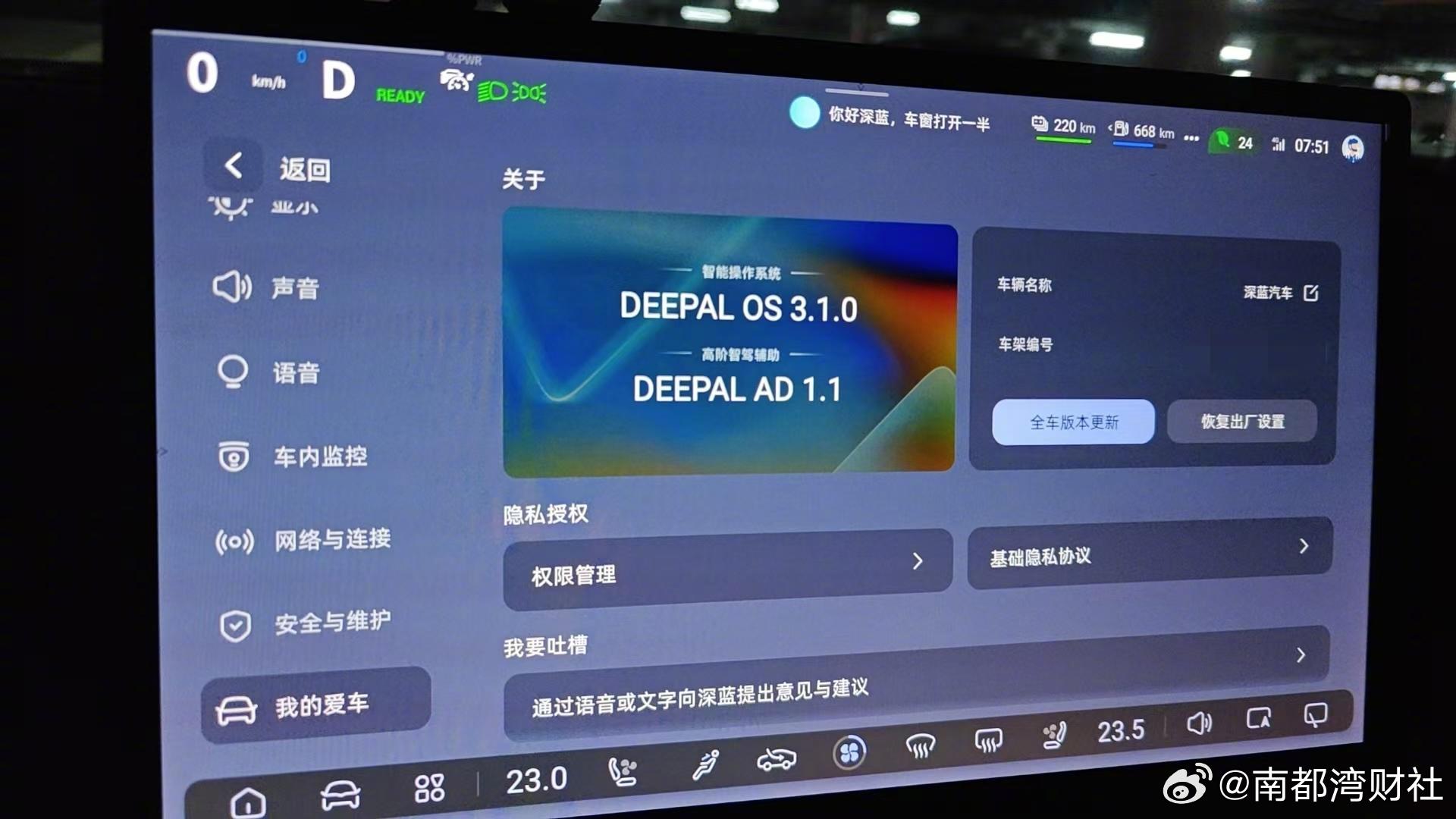 【#花1.5万买的智驾包两年没兑现#?多位#深蓝S7i车主投诉智驾系统更新不兑现#】买车两年,承诺的智驾系统更新基本没兑现,智驾供应商更换之后,更是长期等待解决方案未果。在深蓝S7i车主林先生加入的车主维权群内,多位车主投诉称遭遇同样情况。记者就车主们反映的问题发采访函给深蓝汽车,但截至发稿前未获回复。近期,广东中山车主林先生反映,2024年1月份,他购买了一台深蓝S7i 200max增程版,购车两年,厂家智驾OTA承诺的内容并没有兑现。他表示,购车时对方承诺的高阶智驾包迟迟没有推送,智驾功能存在严重故障但被告知只能“等OTA升级”。当他向客服或及售后反映这个问题时,对方一直答复“会尽快联系处理”,但是至今问题得不到解决。“经销商给我的回复,就是厂家没有中断更新。实际上,我从买车到现在已两年,操作系统有升级,但更看重的智能驾驶仅更新过一次。”林先生称,该车型的新款车型已经不用Deepl AD智驾了。至于如何解决,目前多方的说法就是“等待更新”,却没有后续解决方案。
