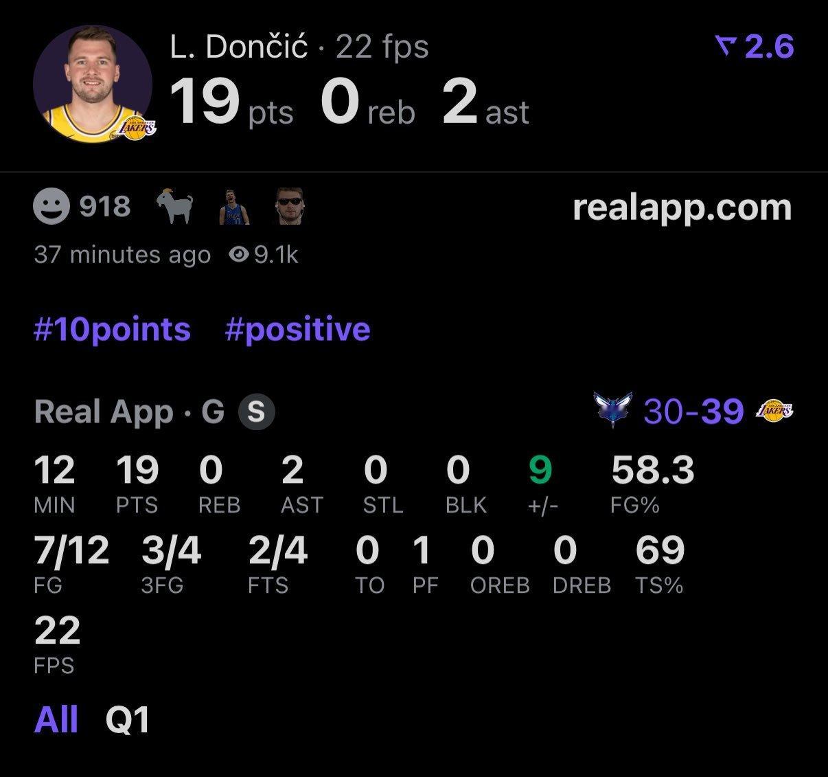 卢卡首节打满12分钟,19分2助攻。黄蜂vs湖人