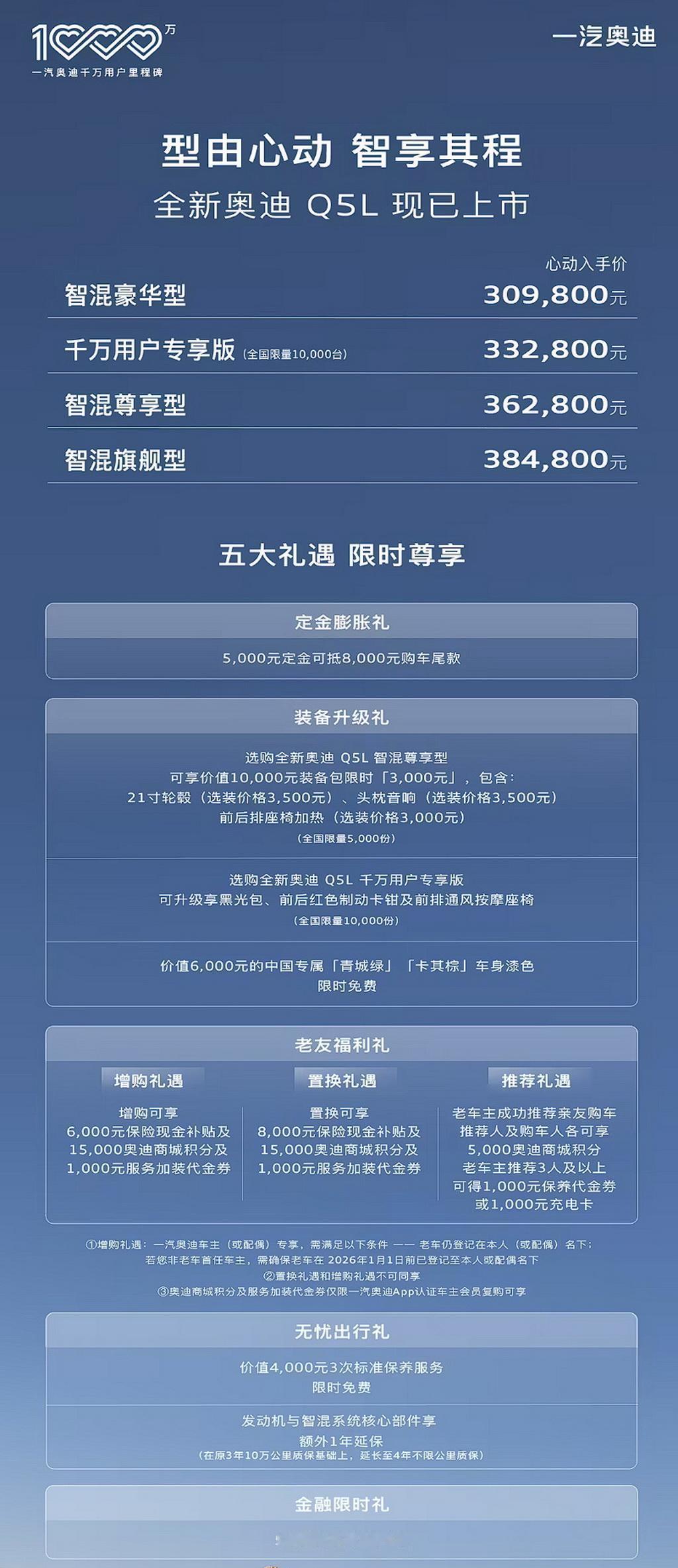 【华为乾崑智驾加持,全新奥迪Q5L上市售30.98万起】日前,全新奥迪Q5L正式