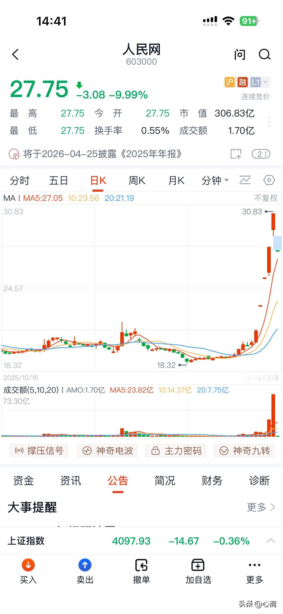 新华网快讯:人民网封死跌停 人民网快讯:新华网封死跌停 闭环!