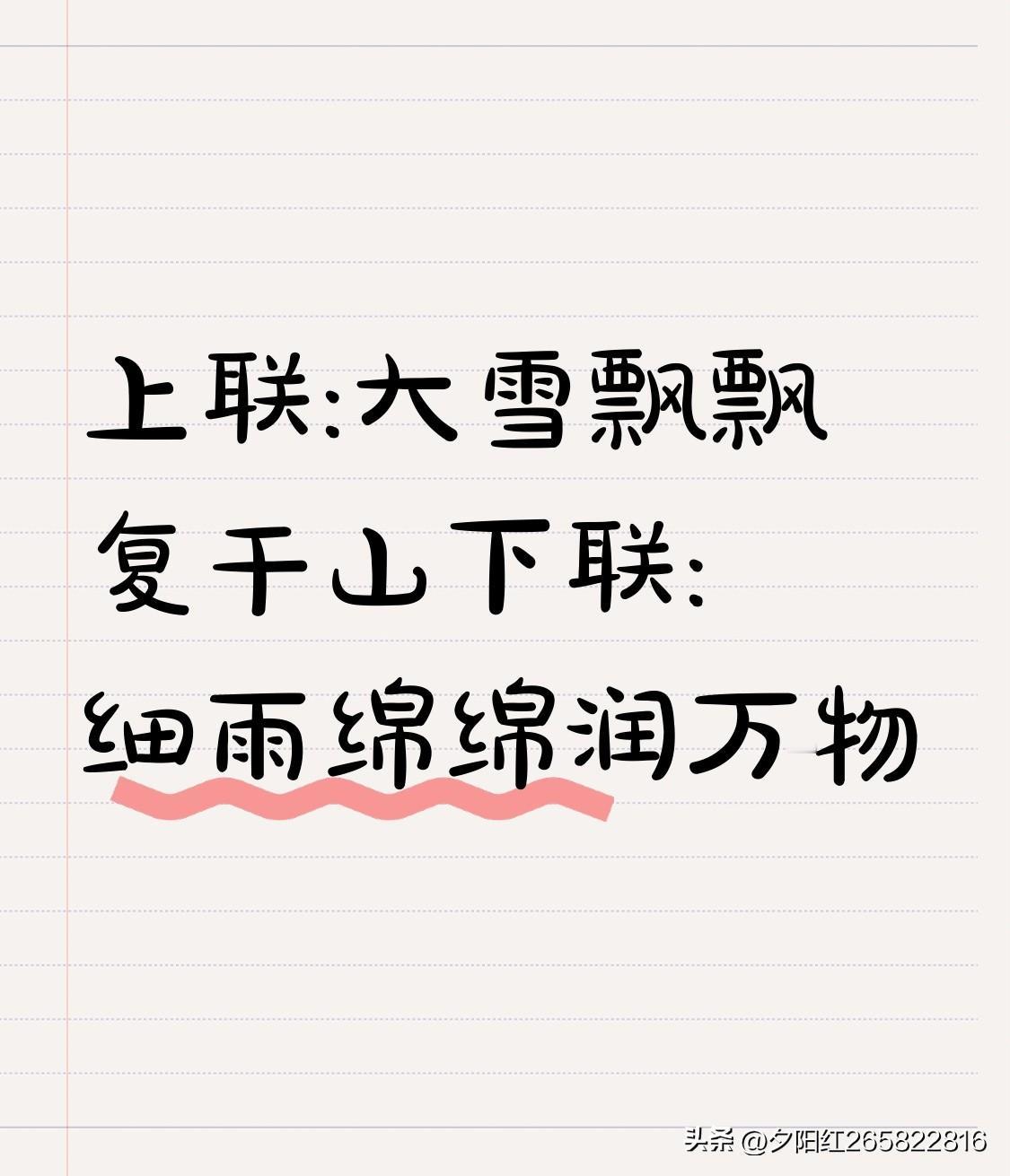 上联:大雪飘飘复干山 下联:细雨绵绵润万物