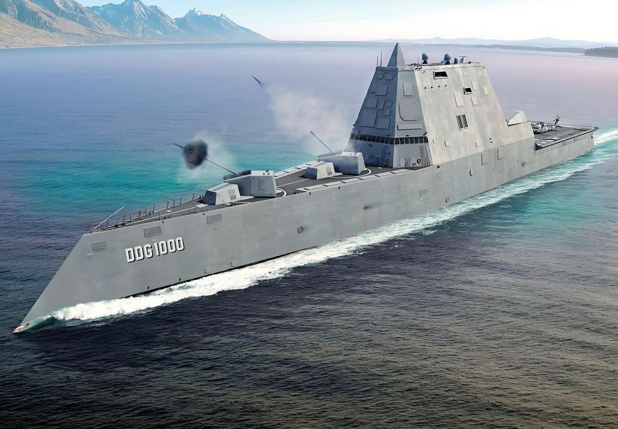 每天认识一件兵器 “朱姆沃尔特”级驱逐舰“朱姆沃尔特”级驱逐舰(Zumwalt destroyer)是美国正在建造的最新一级驱逐舰,以美国海军上将朱姆沃尔特的名字命名,代号为DDX或DDG-1000。DDX在舰体设计、电机动力、网络通信、侦测导航、武器系统等各个方面均运用了全新研发的顶尖科技结晶,展现了美国海军强大的科技实力。DDX是一种多功能革命性的驱逐舰,由诺斯洛普·格鲁曼公司、雷神公司、通用动力公司、英国航空电子系统公司、洛克希德·马丁公司等百余家研究机构和公司联合研发。为了测试DDX的电力与推进系统,美国海军研究办公室(ONR)主导制造了一艘长40.6米的实验艇──先进电力推进船只展示平台(Advanced Electric Ship Demonstrator,简称AESD),整个艇体构型宛若DDX的缩小版。截至2015年7月,DDX已有1艘下水,另有2艘在建。DDX采用先进而全面的隐身设计,使其拥有潜艇般的隐身性──在海上作业时被发现的机率远低于10%。该舰的舰面上只有一个单一的全封闭式船楼结构,整个结构与上面的天线设计都由雷神公司负责。这是一个一体成型的模块化结构,采用重量轻、强度高、雷达反射性低且不会锈蚀的复合材料制造,整体造型由下往上向内收缩以降低雷达反射截面。除了整合了舰桥、所有的电子装备天线之外,还容纳有主机烟囱的排烟道,尾部则含有直升机库。DDX的舰载武器主要包括2门先进火炮系统(Advanced Gun System,AGS)、20具Mk 57垂直发射系统和2门57毫米Mk 110方阵快炮。AGS是一款155毫米火炮,射速为10发/分。Mk 57垂直发射系统设置于船体周边,一共可装80枚导弹,包括“海麻雀”导弹、“战斧”巡航导弹、“标准”Ⅱ型导弹和反潜导弹等。DDX拥有两个直升机库,可配备2架改良型的SH-60R反潜直升机,或者由1架MH60R特战直升机搭配3架RQ-8A无人机的组合。烽火问鼎计划|全球武器装备盘点