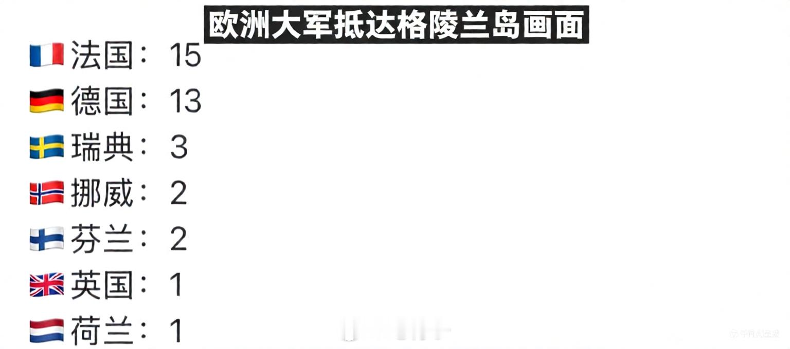 欧洲大军抵达格陵兰岛画面37人,七国联军,这阵容怕不是来搞笑的。法国15人,德国13人,其他小国凑一两三个,活像国际版“凑人数大赛”。就这规模,格陵兰岛的北极熊都得凑过来凑热闹:“兄弟,你们是来团建的吗?”专栏 · 奇闻异事奇葩事