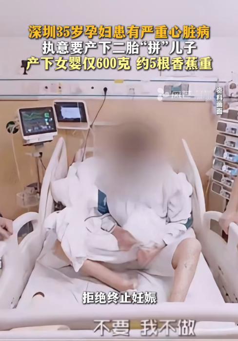 “这就是命啊!”近日,深圳,一90后女子怀有二塔,却不顾心脏病史,执意生二胎拼儿子,医生多次劝阻仍坚持,声称就想生个儿子提升家庭地位,不料最终诞下仅600克的极早产女婴!网友:重男轻女的思想太害人了! 生育本是人生大事,更需要结合自身健康状况理性决定,而生男生女也是概率问题,不该被当作衡量女性价值的标准。而这种偏见却逼着不少女性无视自身健康与意愿,盲目追求生儿子,深圳这位90后女子,就因重男轻女的执念,差点害了自己。 据媒体1月15日报道,女子本身患有心脏病,身体条件不适合再次怀孕,可她头胎生下女儿后,却一心想再要个儿子,认为这样能提升自己在家庭中的地位。医生多次找到她沟通,告诉她的心脏状况无法承受再次怀孕的风险,孕期还有可能引发心衰、早产的情况,想劝阻她放弃这个念头。 但女子并没有听医生的劝告,依旧坚持。整个孕期,她的身体频频出现不适,心脏负担持续加重,甚至在怀孕第二十五周时开始咳血,呼吸困难,最后身体熬不住出现了早产迹象,被迫紧急剖腹产,而生下的孩子依旧是女儿,并且属于极早产婴儿,仅有600克。 女婴出生后就因体重过轻、器官发育不成熟,被紧急送入新生儿重症监护室救治,女子自己也因生产对心脏造成了进一步损伤,需要长期休养。 网友看后纷纷表示,可怜了孩子跟着遭罪,为了拼儿子拿生命赌,实在太不值得了,也有网友表示,都什么年代了还重男轻女,现在这种结果,也不知道后悔了没? 信息来源:《深圳35岁孕妇患有严重心脏病,执意要产下二胎“拼”儿子,产下女婴仅600克约5根香蕉重》风芒新闻