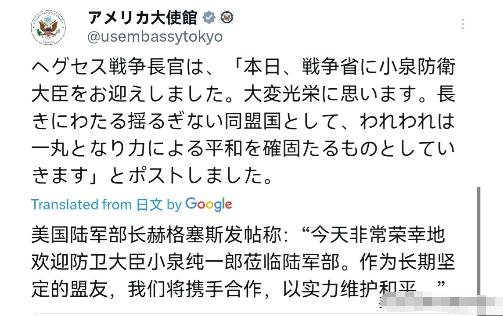 美国国防部长赫格塞思出来挺日本了!1月16日,在与日本防卫大臣小泉进次郎举行会晤之后,美国国防部长赫格塞思发文称:“今日,我在五角大楼会见了日本防卫大臣小泉进次郎,深感荣幸。作为长期以来牢不可破的同盟伙伴,我们将携手合作,以实力维护和平。 很显然,面对来访的小泉进次郎,美国表达挺日本的意思还是非常明显的,而其所谓的我们将携手合作,以实力维护和平,这似乎意在告诉我们,美日同盟关系非常密切,中国最好是认识到这一点,切勿轻举妄动。这样的表态,当然有针对我们的意味,但是有人有点意外的是,美国方面竟然没有点我们的名。   以往美国官员在类似场合,往往不把“中国”二字挂在嘴边就不舒服,仿佛不点名就无法显示他们的强硬,可这次赫格塞思却一反常态,玩起了“只做不说”的把戏。   这种变化,咱们不能简单地看作是美国人“嘴下留情”,这背后恐怕藏着更深层的算盘。你要知道,赫格塞思作为美国新任防长,这次是跟日本防卫大臣小泉进次郎的正式会晤,这种场合的每一句措辞,那都是经过白宫那边反复斟酌的。   他们所谓的“以实力维护和平”,这七个字听起来冠冕堂皇,其实谁都听得出来,这就是冲着亚太地区日益紧张的局势来的,尤其是冲着咱们来的。   没点名,不代表没针对,甚至可以说,这种不点名的针对性,有时候比直接点名更让人需要警惕。这就像是两个人在门口堵着你,手里拿着棍子,嘴里说着“我们要维护这条街的秩序”,虽然没有喊你的名字,但那个眼神就是告诉你:别乱动。   美国人这次选择模糊处理,一方面可能是为了在外交上留有余地,不想把话彻底说死,毕竟中美之间现在还要在经贸、气候等诸多领域打交道,彻底撕破脸对他们也没好处。   另一方面,这也可能是他们的一种策略调整,试图通过加强同盟关系的实际行动,来代替以往那种空洞的口水战,用更实质性的军事捆绑来给对手施压。   再来看看日本这边,小泉进次郎这次去五角大楼,显然也是带着任务去的。日本政府最近在防卫政策上动作频频,又是增加军费,又是搞各种远程打击能力,心里其实是很渴望得到美国“老大哥”的一个明确承诺的。   赫格塞思这番话,虽然没有明说帮日本对付谁,但对于小泉进次郎来说,这就是一颗定心丸。   美方这种“挺日本”的姿态,无疑会进一步助长日本在军事野心上的膨胀。我们可以预见,未来日本在参与地区安全事务、配合美军进行军事部署方面,步伐可能会迈得更大、更快。   这种美日同盟的紧密化,对于我们来说,绝不是什么好消息。它意味着我们在周边的安全环境将面临更加复杂的挑战。   美国人嘴里的“实力”,说白了就是军舰、飞机和导弹,他们想用这些东西来“维护”的和平,实际上就是一种建立在武力威慑之上的霸权秩序。   这种秩序的逻辑就是:我有强大的武力,所以你得听我的,这就是所谓的“和平”。这种逻辑,咱们显然是不会认的,也是不可能接受的。   而且,我们要特别注意赫格塞思这个人。作为特朗普时期出身的人物,他的行事风格往往带有很强的实用主义色彩,甚至有些不可预测性。   这次他虽然没有像某些传统政客那样长篇大论地攻击中国,但这种不按常理出牌的风格,有时候反而更危险。   这说明美国在对华政策上,可能正在尝试一种新的话术体系,不再局限于简单的意识形态对抗,而是更注重构建具体的、排他性的军事同盟网络。   从地缘政治的角度看,五角大楼这次释放的信号非常明确,就是要把美日同盟打造成围堵战略的核心支点。   他们想通过这种紧密的捆绑,把日本更深地拴在自己的战车上,让日本在未来的地区冲突中充当急先锋。这对于我们来说,意味着必须做好应对更加复杂局面的准备。   我们不能因为对方没有“点名”就放松警惕,相反,我们更应该看清他们这种“含沙射影”背后的真实意图。   但在实际的军事动作上,他们是绝对不会手软的。我们可以预料,未来美日在东海、南海等方向的联合军演会越来越频繁,针对性会越来越强,甚至可能在导弹防御系统、尖端武器研发等方面进行更深度的合作。这种趋势,值得我们高度关注。   甚至可以说,这种“心照不宣”的对抗氛围,有时候比直接骂娘还要压抑。这说明双方都在为可能出现的更坏情况做准备,都在默默地磨刀霍霍。   既然他们想玩“实力的游戏”,那我们也没理由不陪他们玩到底,毕竟,在实力面前,任何花言巧语都是苍白的。我们唯有不断增强自身实力,才能让那些试图“以实力维护霸权”的人,真正学会什么叫作“和平”。
