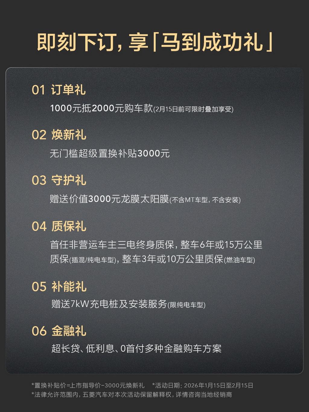 【置换补贴价5.98万起,五菱星光560上市】日前,五菱“全能硬派大空间SUV”星光560上市,共推出4款车型,涵盖燃油、插电和纯电三种动力,售价区间6.28-9.88万元,置换补贴价为5.98-9.58万。该车基于天舆架构D平台打造,在外观方面基本保留了宏光侠概念车上硬朗风格,提供星际蓝、烟霞灰、银霜白和耀石黑四种颜色可选。长宽高分别为4745/1850/1755(1770)mm,轴距为2810mm,定位A+级SUV,全系标配18英寸轮圈。车内镶嵌12.8英寸娱乐屏,内置Ling OS系统并支持HiCar、CarLink、DLNA等手机互联。星光560被动安全依旧在同价位表现优秀,拥有六环高强钢车身,20处1500MPa热成型钢、74.9%高强钢占比、前防撞梁+吸能盒采用2.5mm铝合金材质。动力方面,燃油版车型搭载1.5T发动机,最大功率为130千瓦,峰值扭矩为290牛·米,与之匹配的是6挡手动变速箱和CVT变速箱。插电混动版搭载灵犀动力3.0技术,其由1.5L发动机与电机组成,最大功率分别为78千瓦和145千瓦,其CLTC纯电续航125公里,WLTC综合续航里程高达1100公里,WLTC亏电油耗仅为5.3L/100km。电动版车型搭载最大功率为100千瓦集成式驱动电机系统,并搭载60kWh神炼电池,CLTC工况下的纯电续航500km,官方电耗13.6kWh/100km,支持2C充电,30%-80%仅20分钟,15分钟补能200km。【来自懂车帝车友圈】