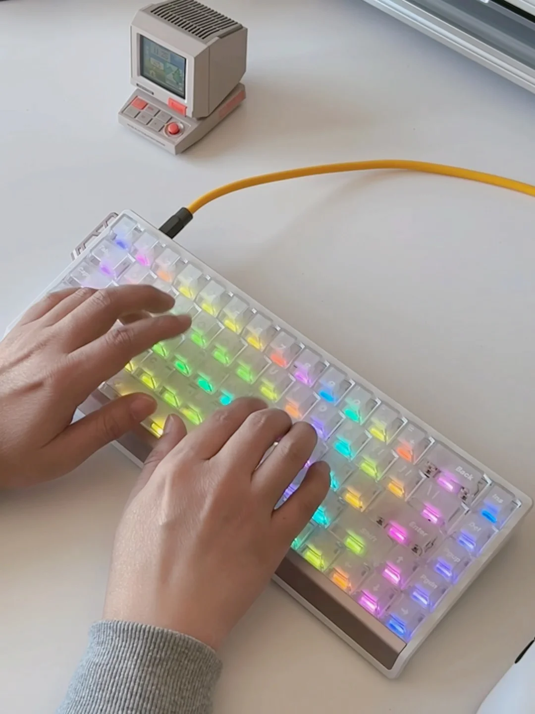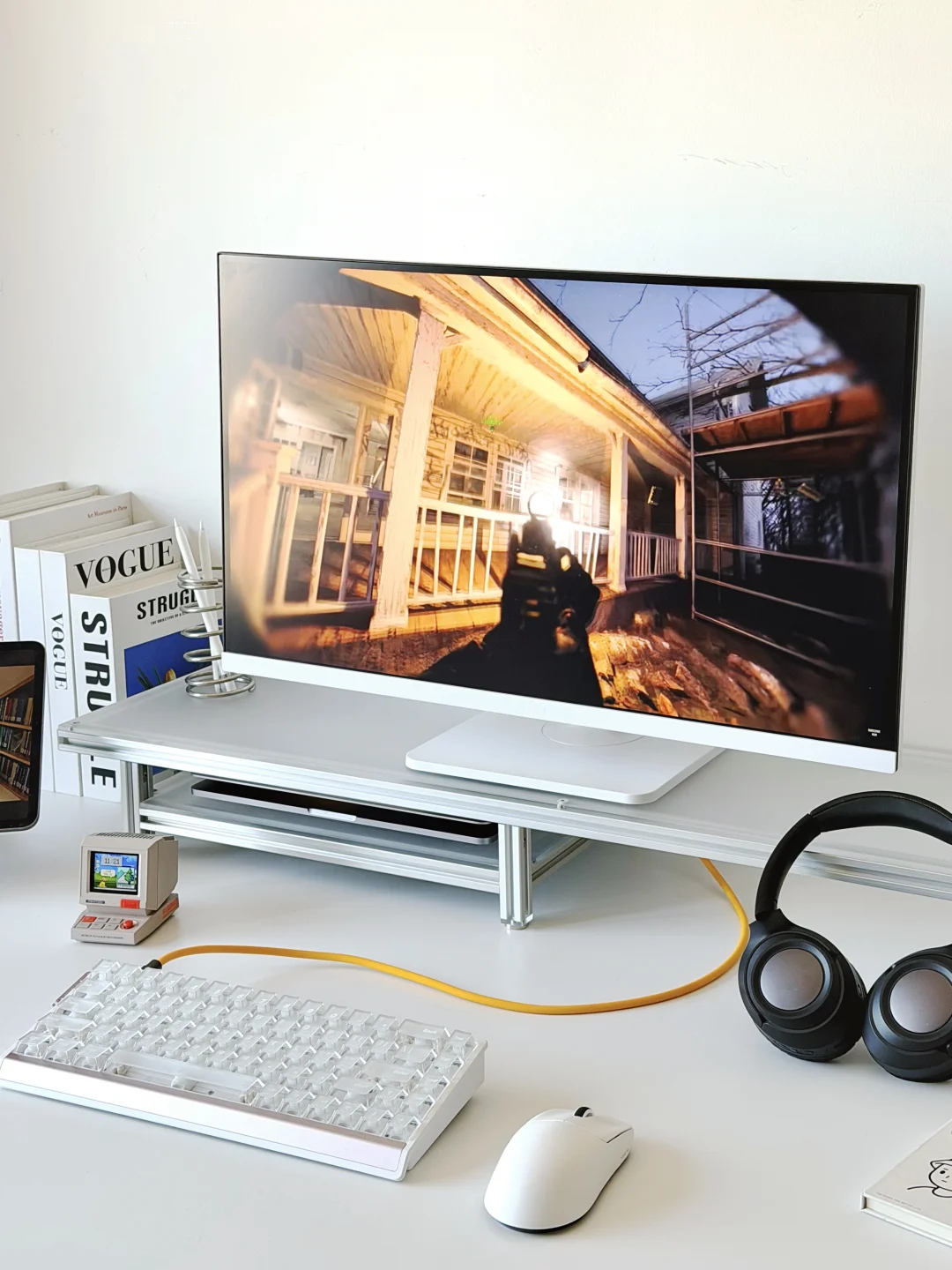 最近把桌面做了减法,果真还是要大升降桌 160*80 桌面看着也更清爽。 68RX磁轴键盘放上去 码字手感轻快,玩游戏把触发调低,操作反馈很直接,桌搭和游戏都兼顾了。