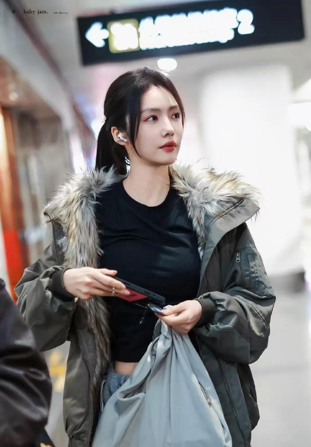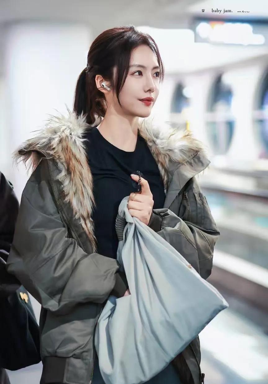 蔡文静的机场私服,把“酷飒松弛感”焊在了身上! 军绿色派克服自带硬朗质感,毛领设计保暖又显贵,内搭短款黑T露出腰线,悄悄拉长了腿部比例,下身牛仔裤+超大托特包的组合,随性又时髦。高马尾造型活力满满,走路带风的样子又美又飒,完全是普通人能直接抄作业的冬日穿搭范本!