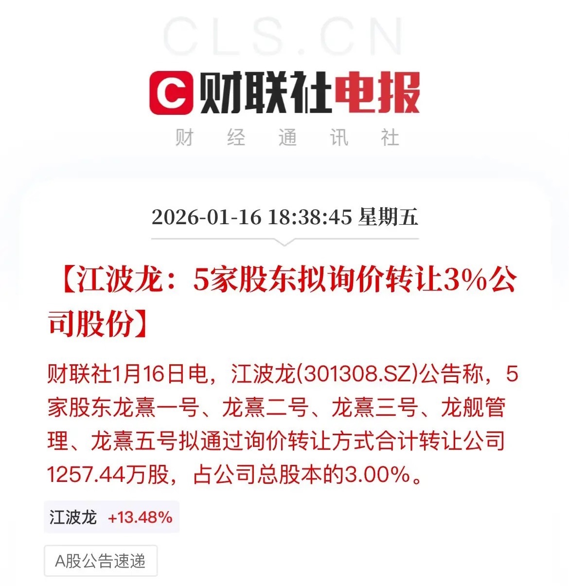 存储利空,半年翻3倍的江波龙,公告要询价转让了,只要股价一涨的比较好,总会有层出