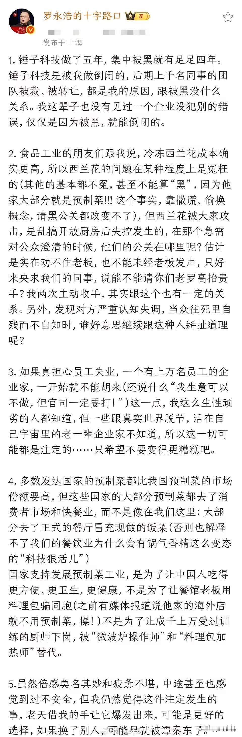 罗永浩到现在还是晕头转向的,他应该多少对西贝关掉的100多家店有点愧疚的!毕竟在