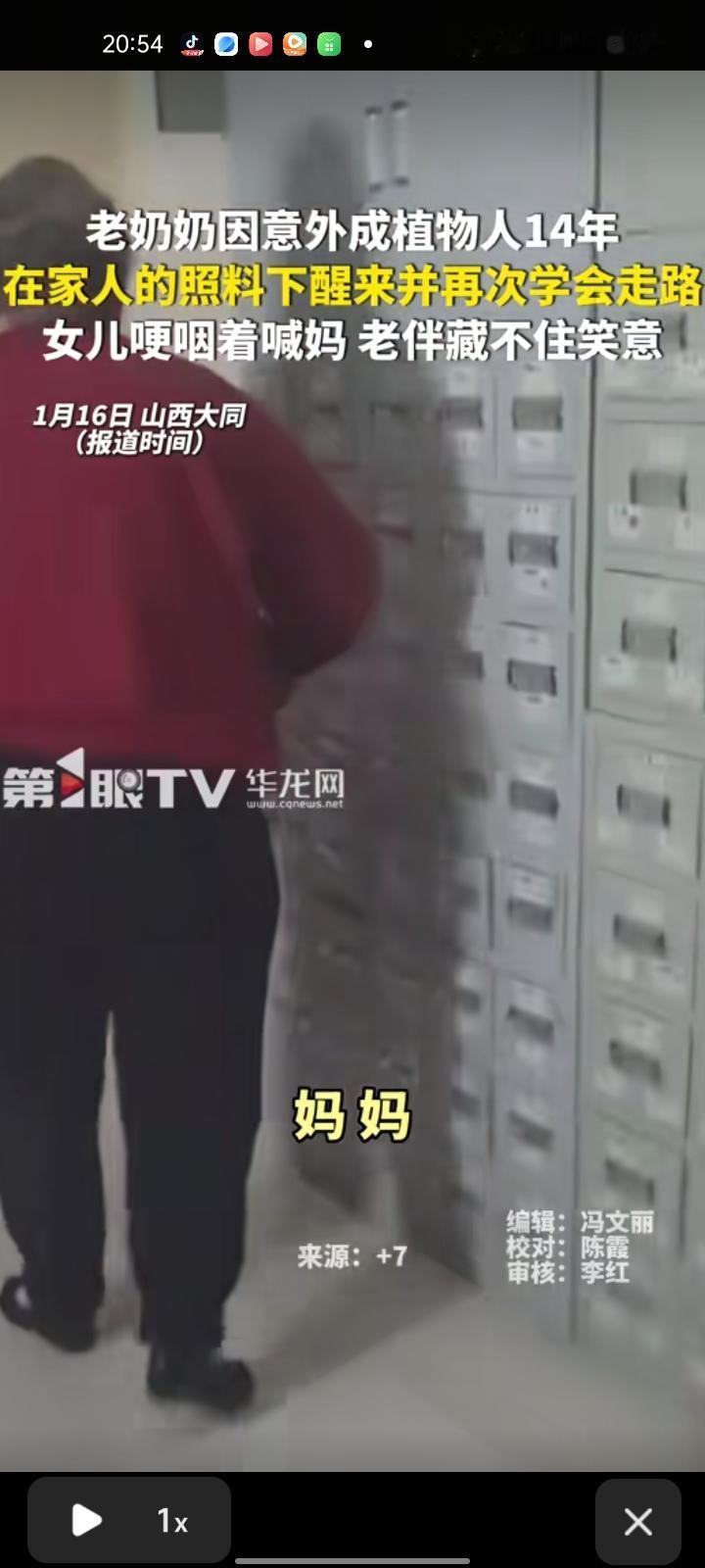1月15日,山西大同。一则14年植物人姥姥自主走路的视频引发关注,外孙女透露称,自己小学三年级时,姥姥因意外成植物人,当时医生已让家属做好心理准备,没想到姥姥凭借坚强意志创造奇迹,从最初的不省人事逐步恢复到睁眼、抬手、说话、认字,再到搀扶行走,如今已能自主扶墙走路。视频中,女儿见此情景,哽咽着反复喊“妈”,老伴在旁开怀大笑,激动直呼“终于熬出来了”。