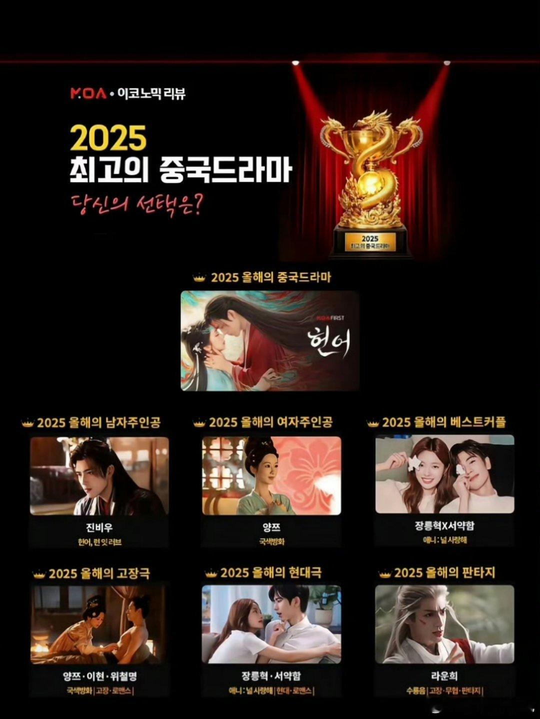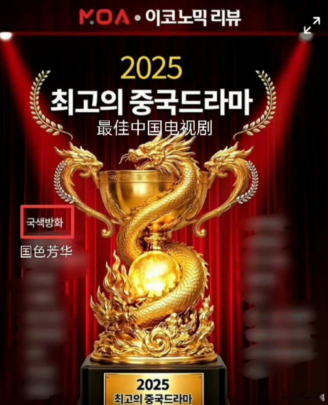 2025韩国MOA平台年度奖项名单🈶【年度最佳中国电视剧】《国色芳华》【年度最佳女主角】《国色芳华》杨紫【年度最佳古装剧】《国色芳华》杨紫的演技又一次被认证,直接斩获三大奖项,太厉害啦!
