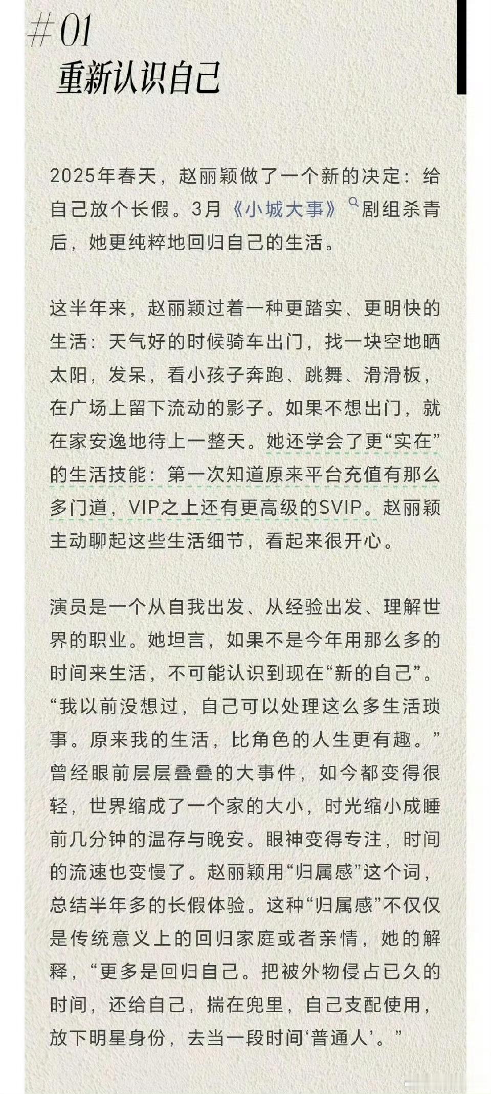 看赵丽颖接受ELLE的采访就能看得出来,她说休息是真的休息,经常连续一两个月“神隐”不出来。但休息好了立马恢复五金杯女帝的丽神状态,新代言、登五大想要就能有,但有的人可能三金提名都没有还要天天嘲讽丽,我滴天呐,不讲不讲
