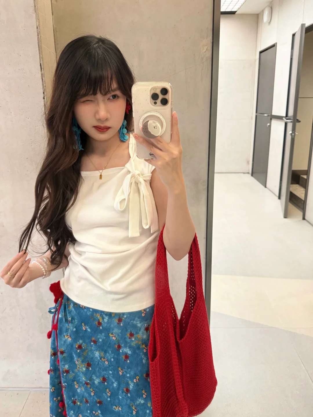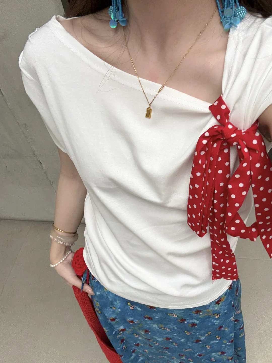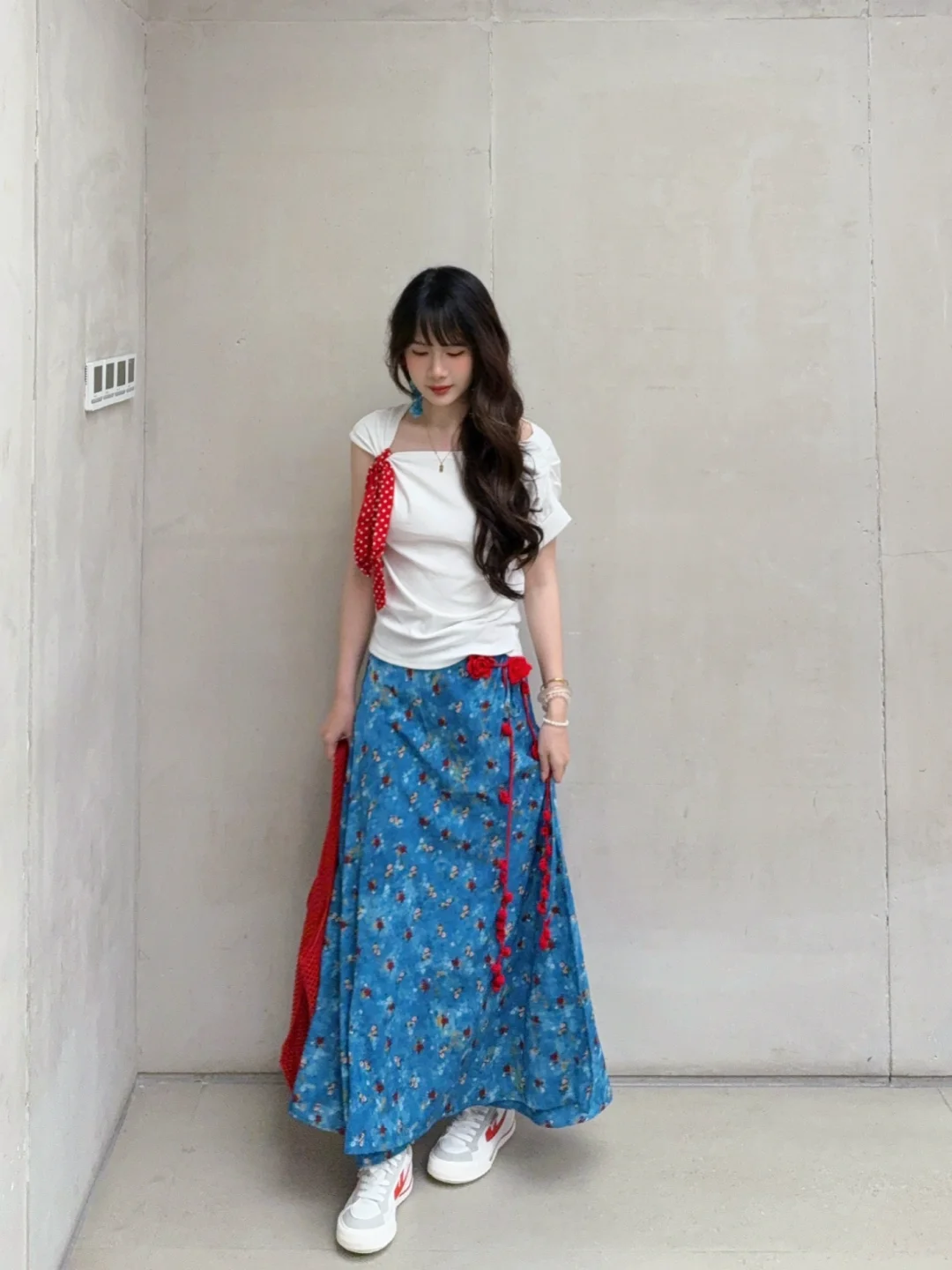 168/107左右 纯分享 理性种草 白➕蓝➕红的搭配真的百穿不腻 明媚又显白! 很有海岛风情的感觉 日常穿也不突兀 明媚泰兰德🥰撞色系真的很适合夏日 ~ 上衣也可以换成白色正肩短袖/一字肩/吊带/荡领上衣 半裙换成之前穿过的中裙或者短裙都是可以的 其实这一身搭配别的颜色的半裙 比如粉色绿色黄色 包包鞋子呼应一下也是很好看的 鞋子也可以换成人字拖/凉鞋/勃肯鞋/红色德训